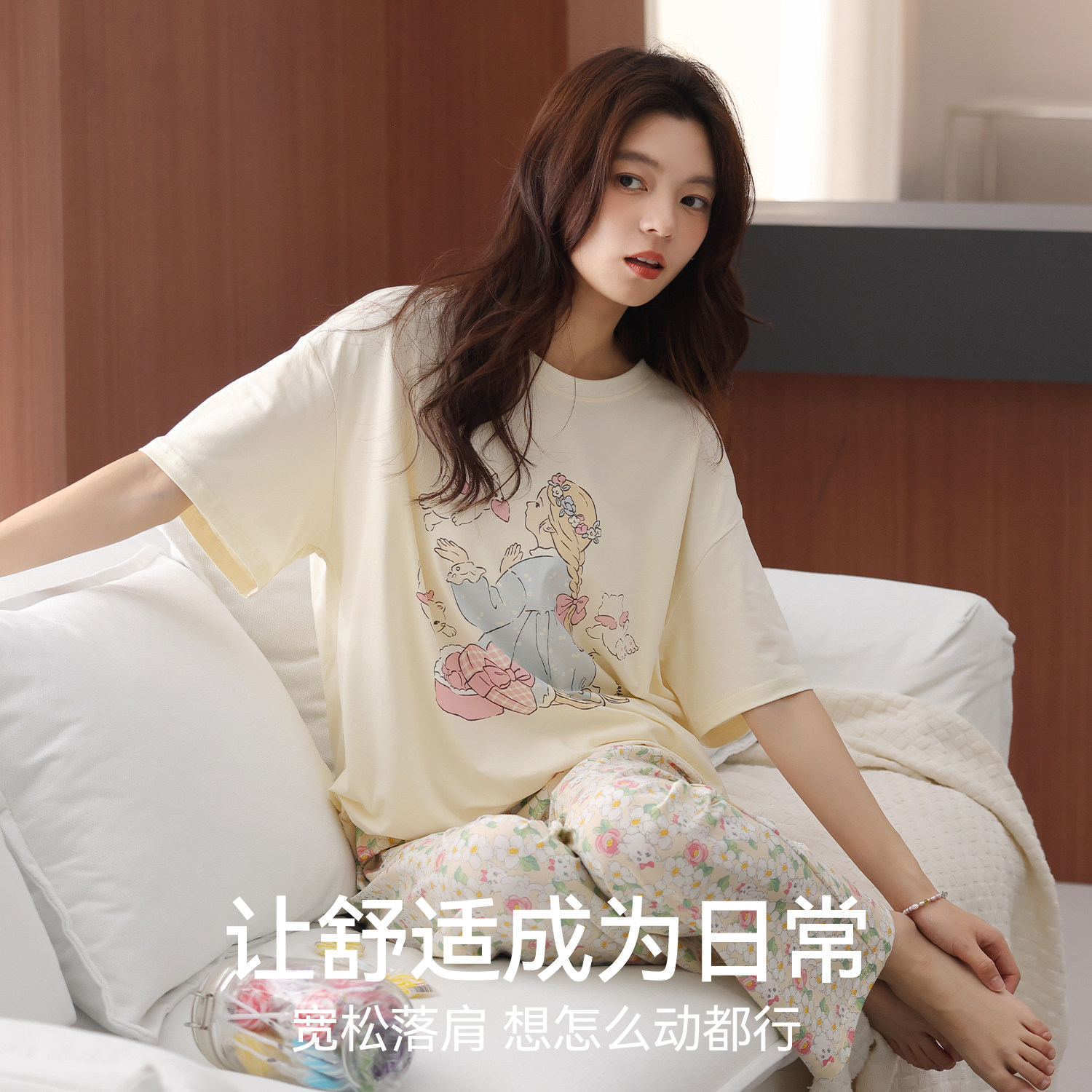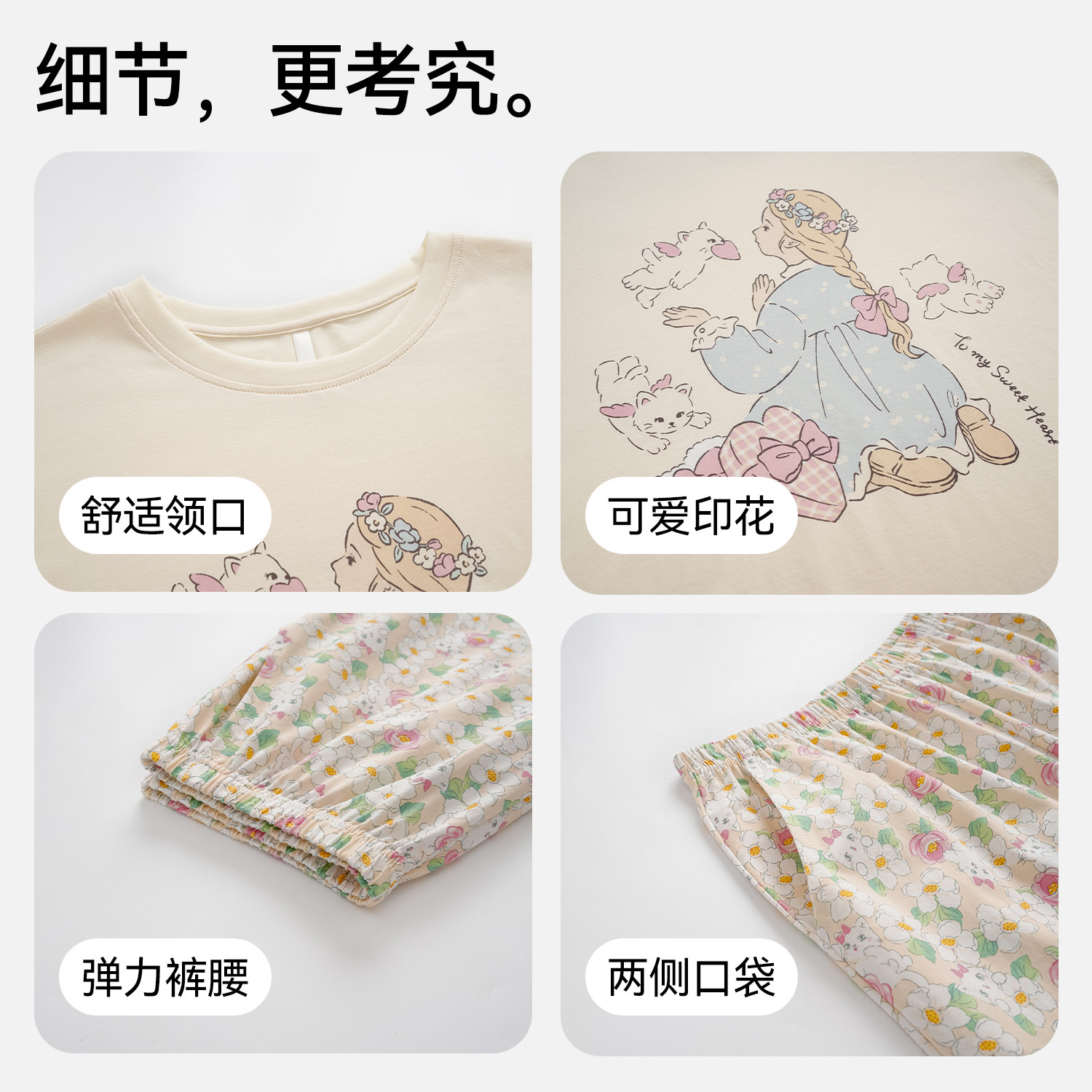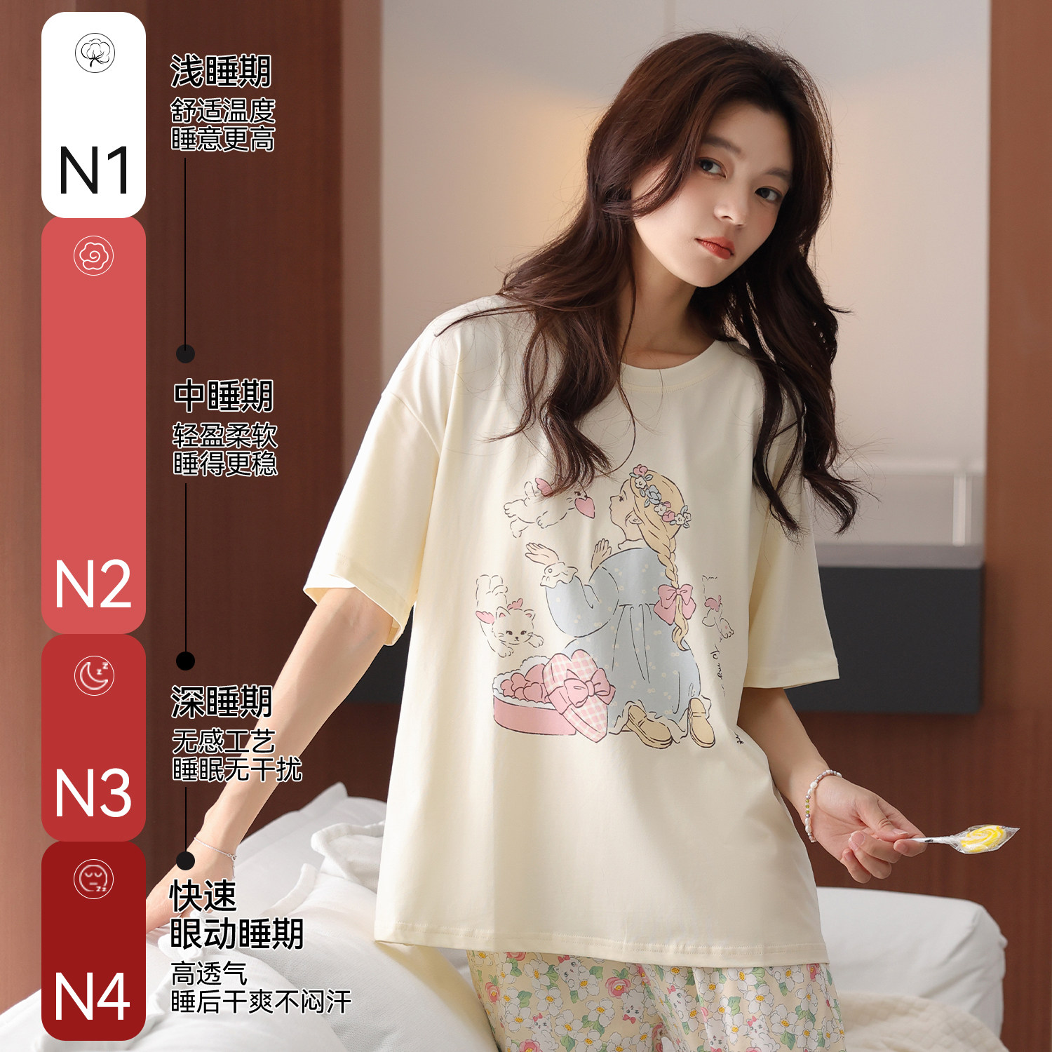 都市丽人纯棉睡衣女夏季2026年新款带胸垫卡通薄款家居服可外穿