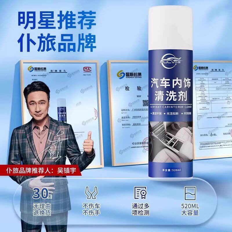 仆旅汽车内饰清洗剂顶棚座椅真皮革专用免水洗泡沫清洁剂去污神器