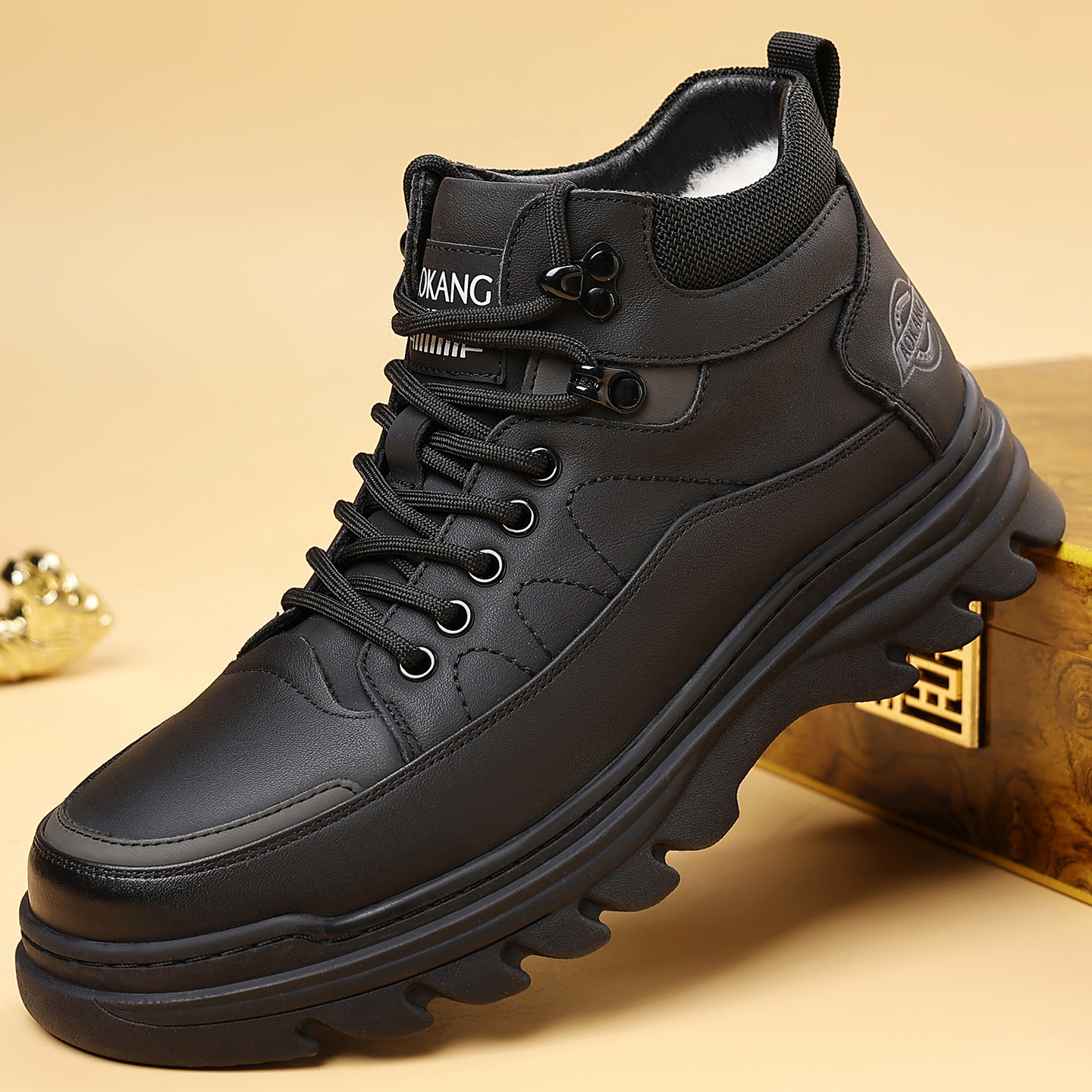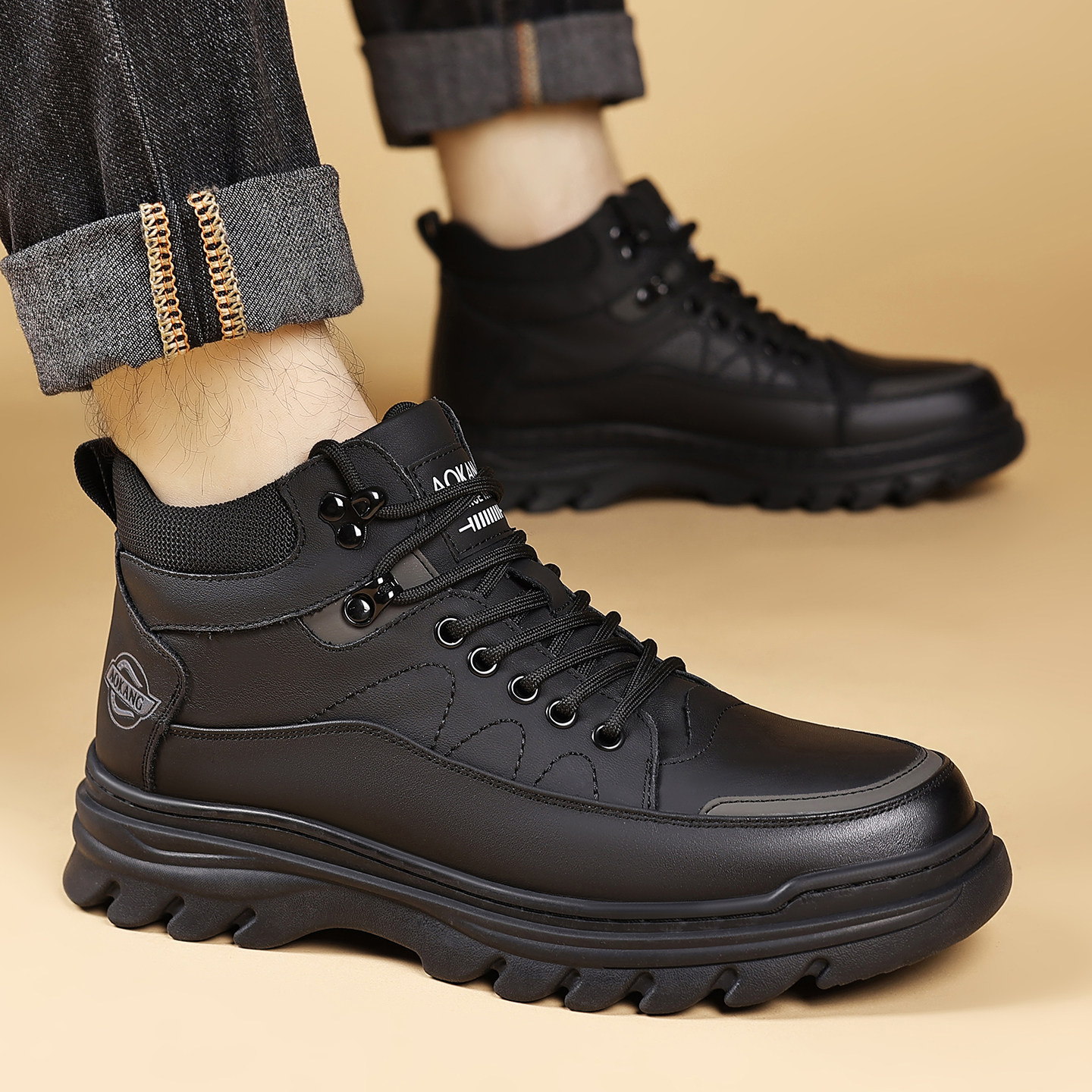 意尔康男鞋秋冬季2025新款加绒棉爆款高帮皮面板鞋男士马丁靴大码