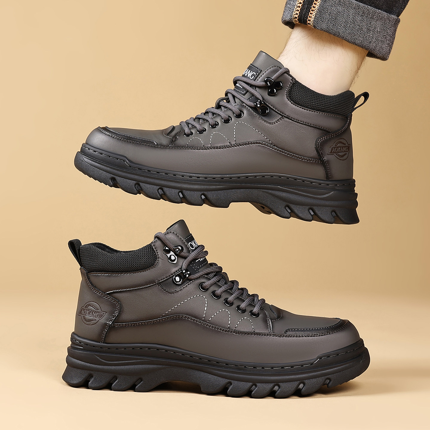 男鞋高帮板鞋2025秋冬新款皮面防水韩版百搭软底舒适学生运动潮鞋