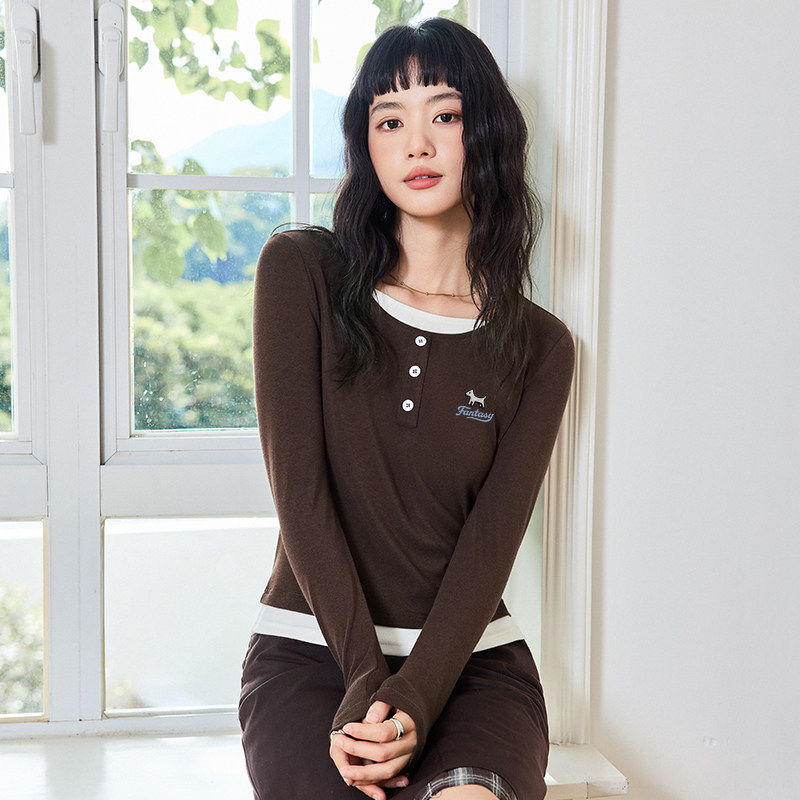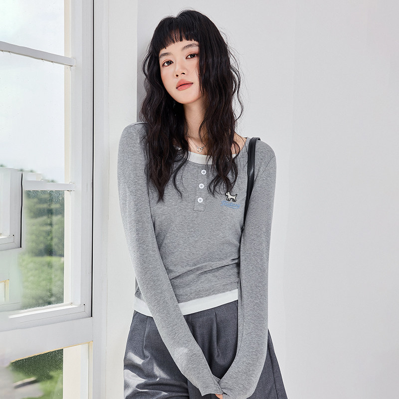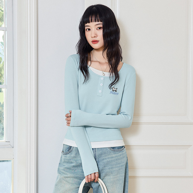 雪中飞假两件长袖t恤女春内搭可外穿26新款女生修身显瘦打底衫PC