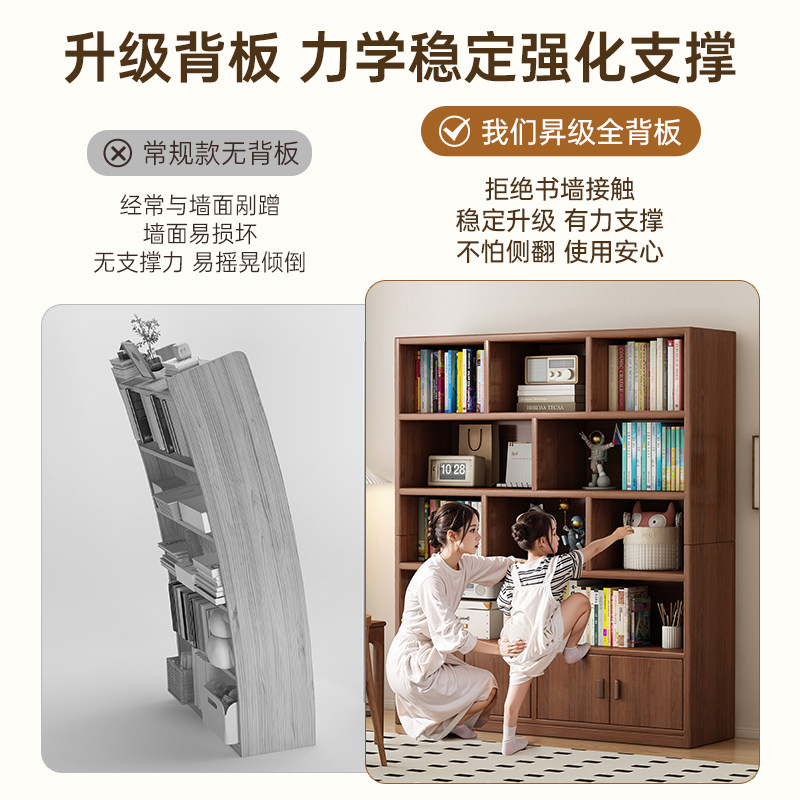 书柜储物柜一体靠墙书架落地置物架客厅家用简易多层收纳展示柜子