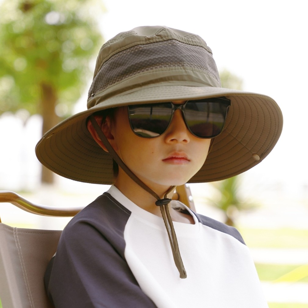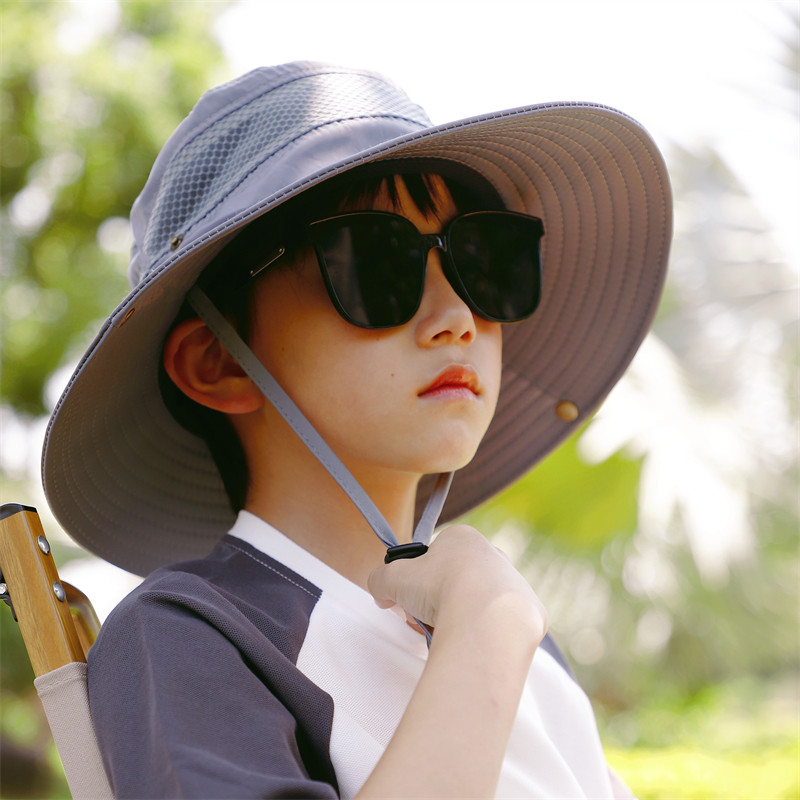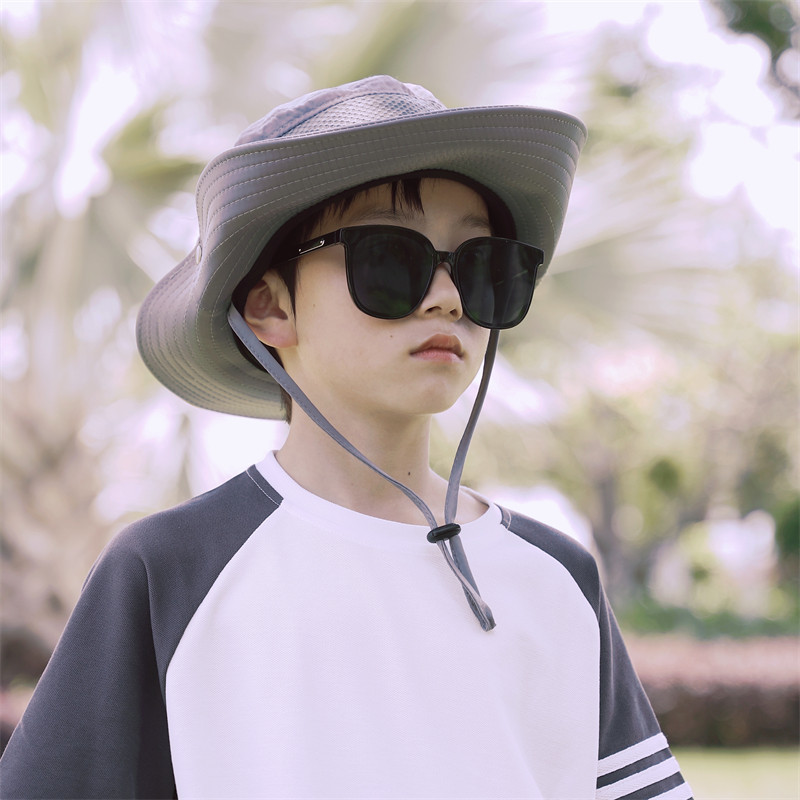 潮品部落户外防晒帽子大童男女学生网眼抽绳遮阳登山夏令营大帽檐