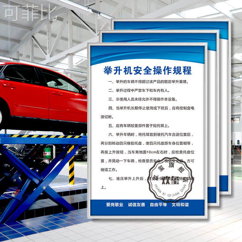举升机安全操作规程汽车维修制度修理厂汽配4S店钣金工喷漆改装汽修四轮定位仪标语标牌宣传展板挂图墙贴定制