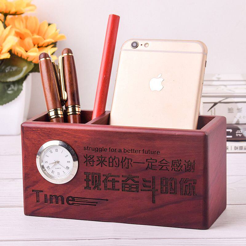 新品 直销创意多功能实木笔筒办公用品桌面笔桶收纳盒广告礼品