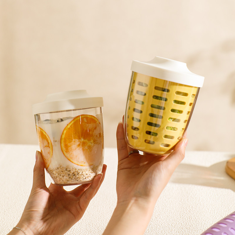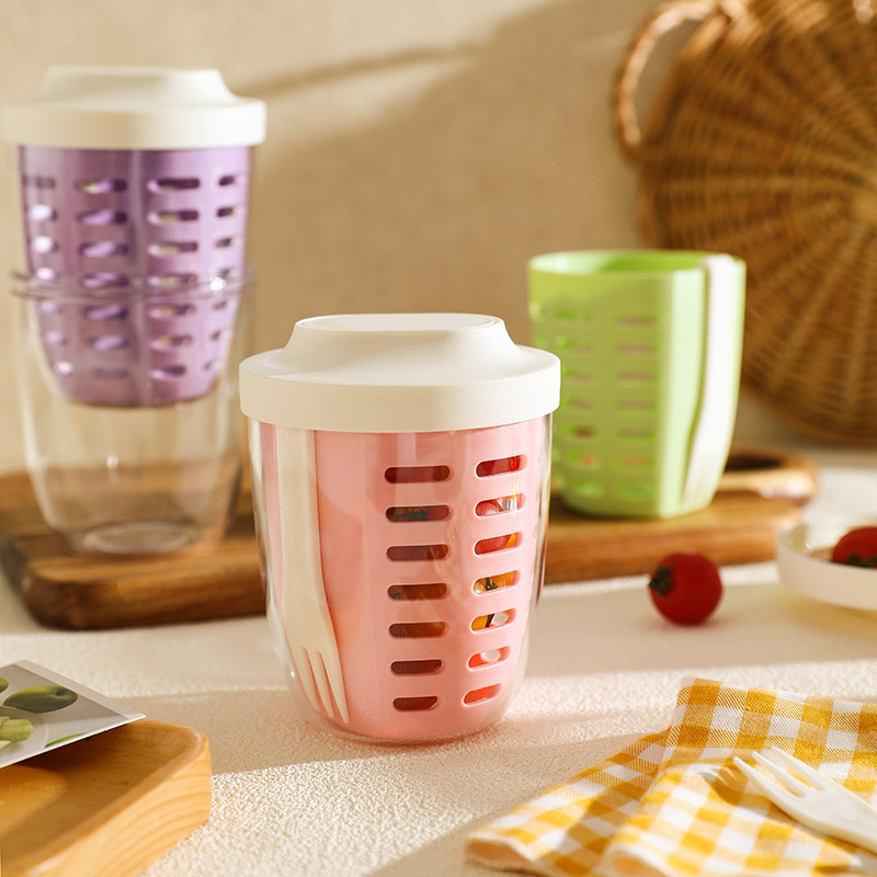 舍里 ins风早餐沙拉杯带叉子带盖外出随身便携水果蔬菜轻食牛奶杯