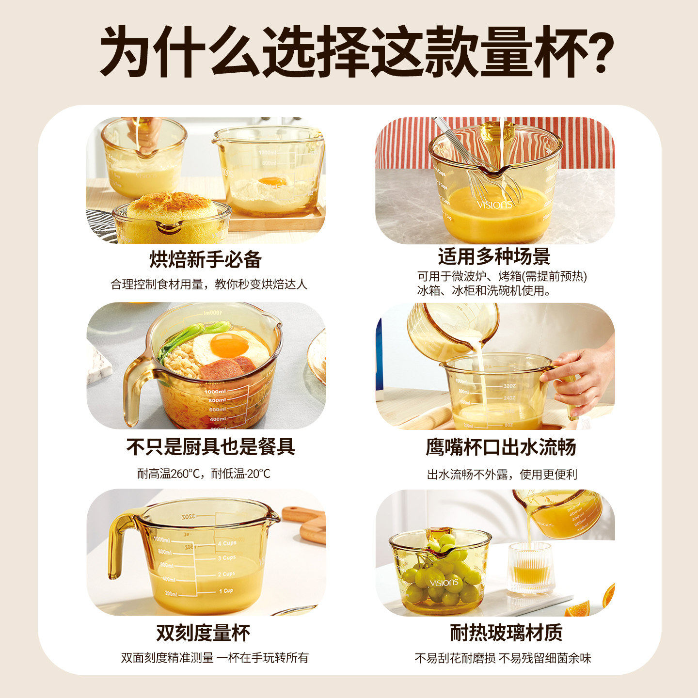 康宁玻璃量杯带刻度耐高温微波炉厨房专用食品级早餐牛奶杯子