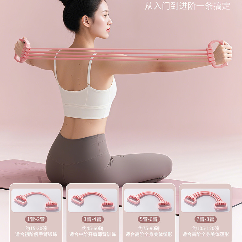健身可调节弹力带拉力器女开背开肩美背拉力绳弹力绳练背神器8档