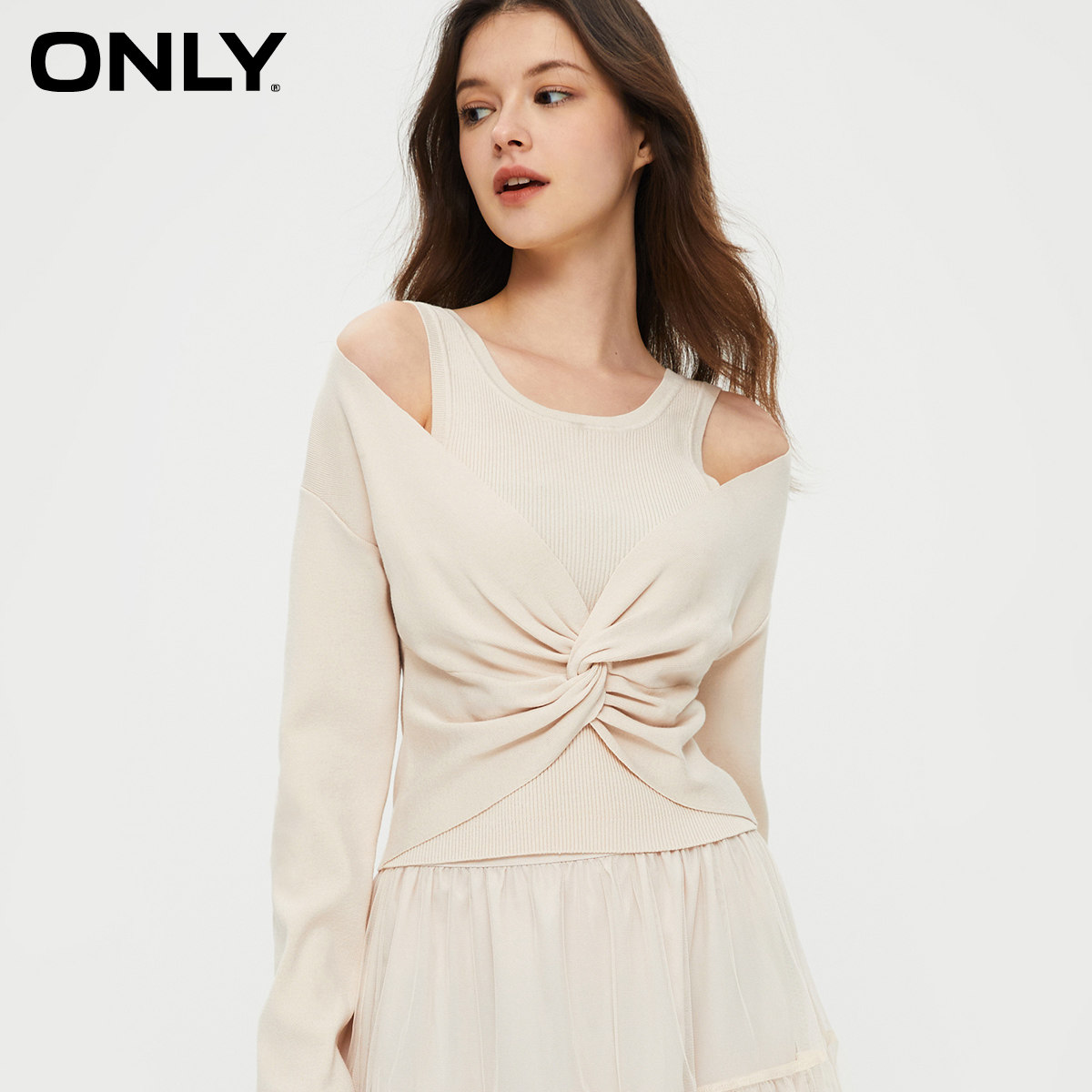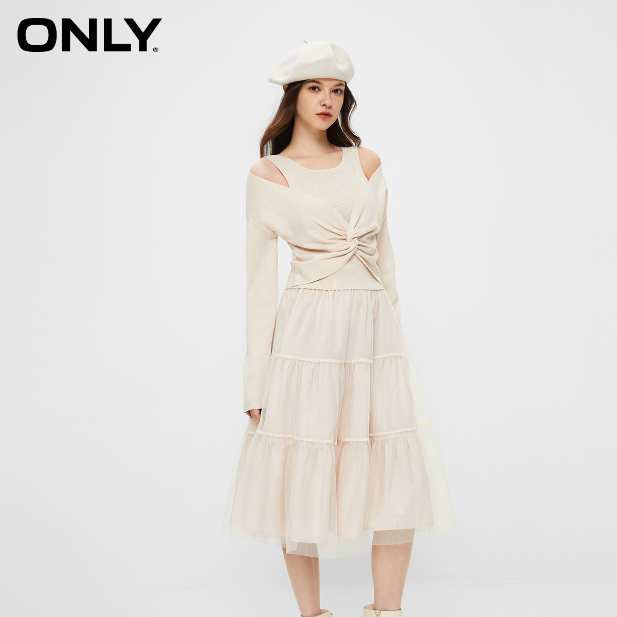 【ONLY奥莱】春季新款通勤气质收腰U领欧根纱套装连衣裙女