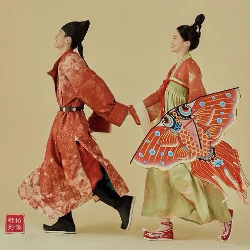 唐宫夜宴古代中式婚纱照摄影道具明制汉服订婚书手提钻鱼灯笼风筝