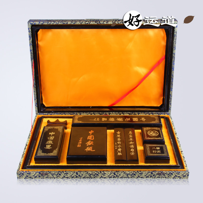 古琴名画24寸高档文房四宝精品套装礼盒书法用品毛笔砚台歙砚徽墨 毛笔套装宣纸国画书法练字专用狼毫兼毫