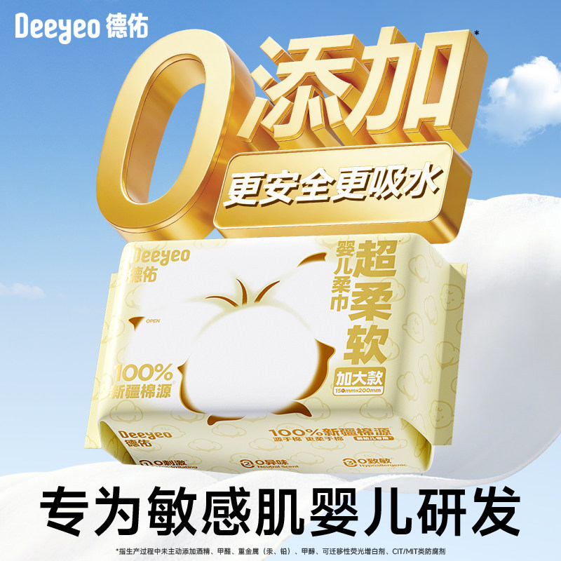 德佑洗脸巾绵柔巾一次性婴儿专用干湿两用擦脸巾非棉柔巾新生宝宝