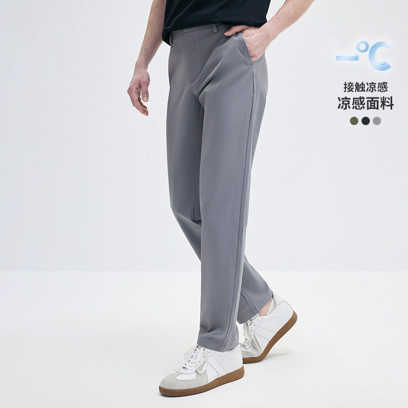 [冰丝]Navigare意大利小帆船灰色凉感休闲裤男新款弹力小脚裤子
