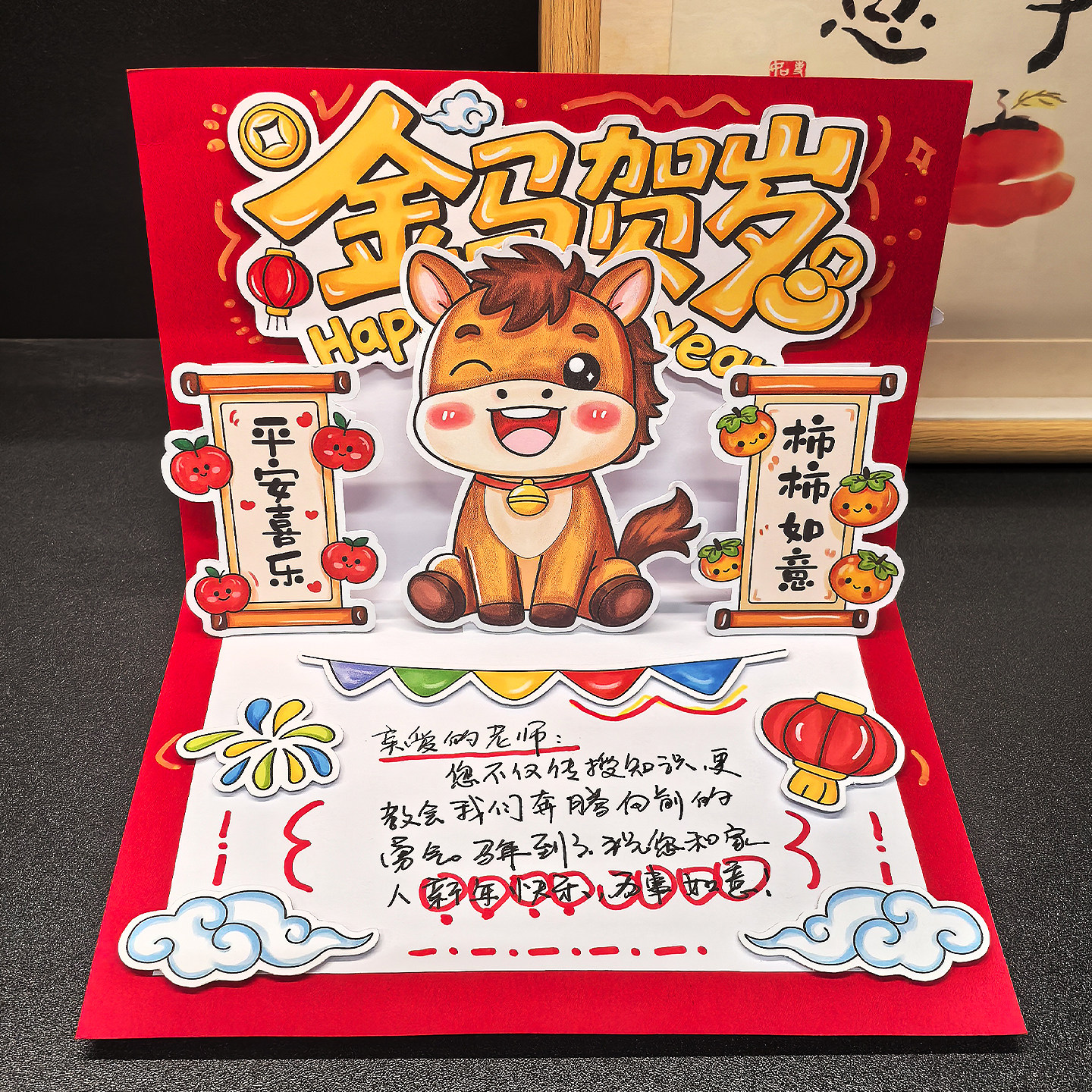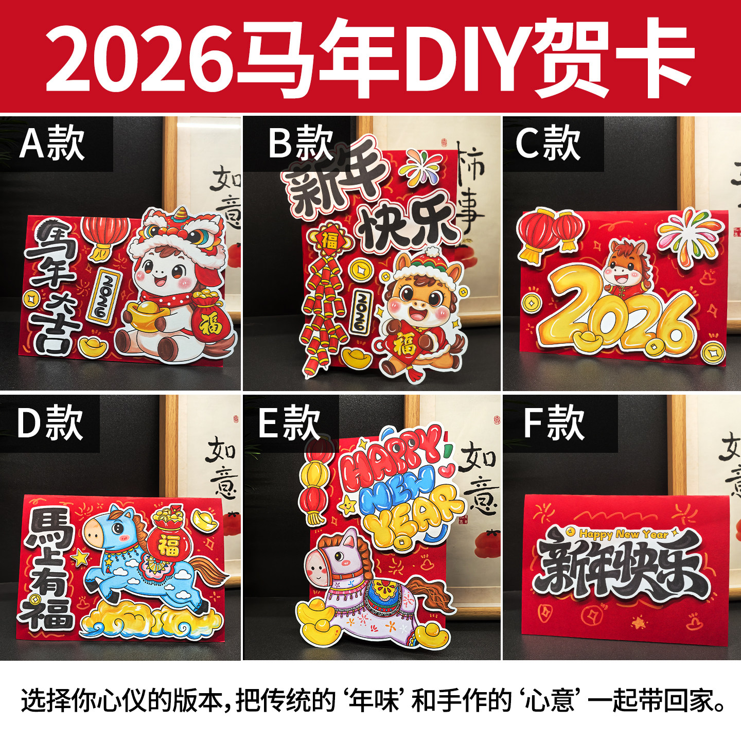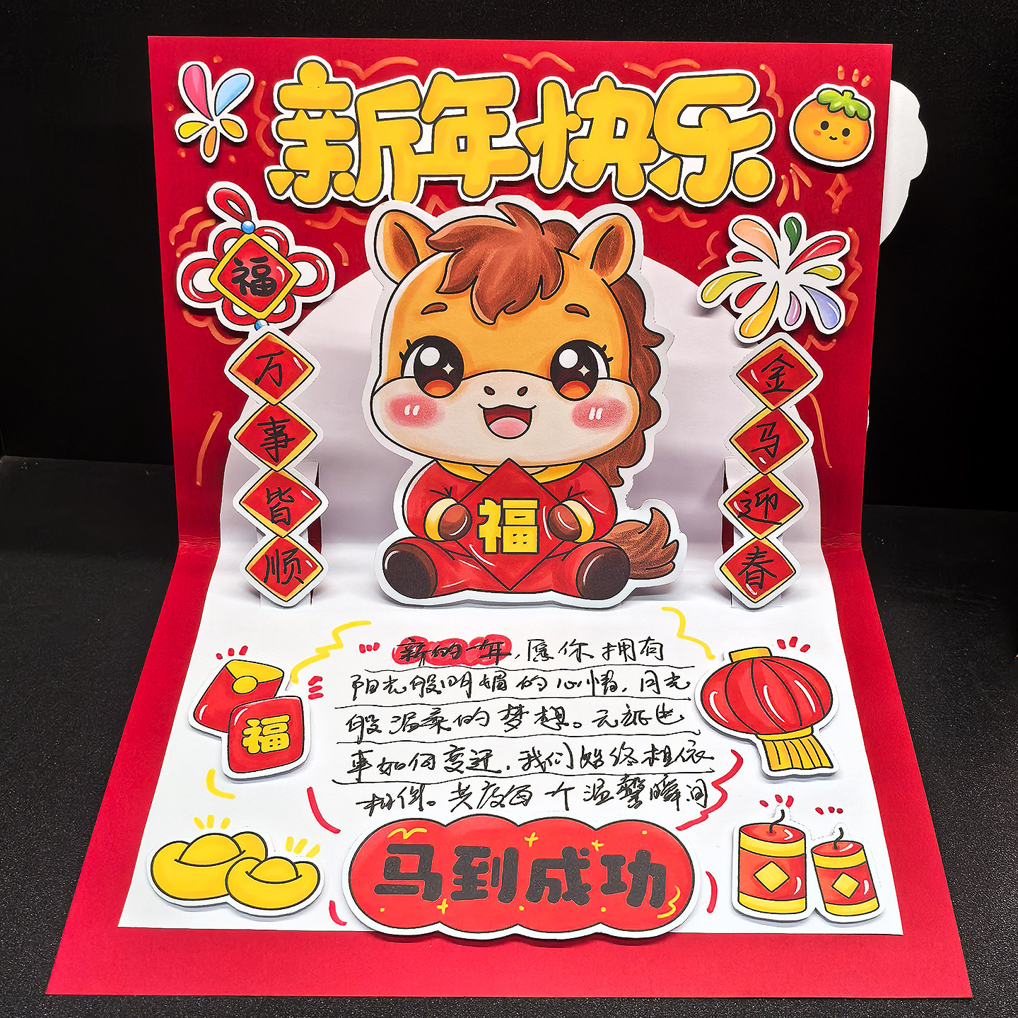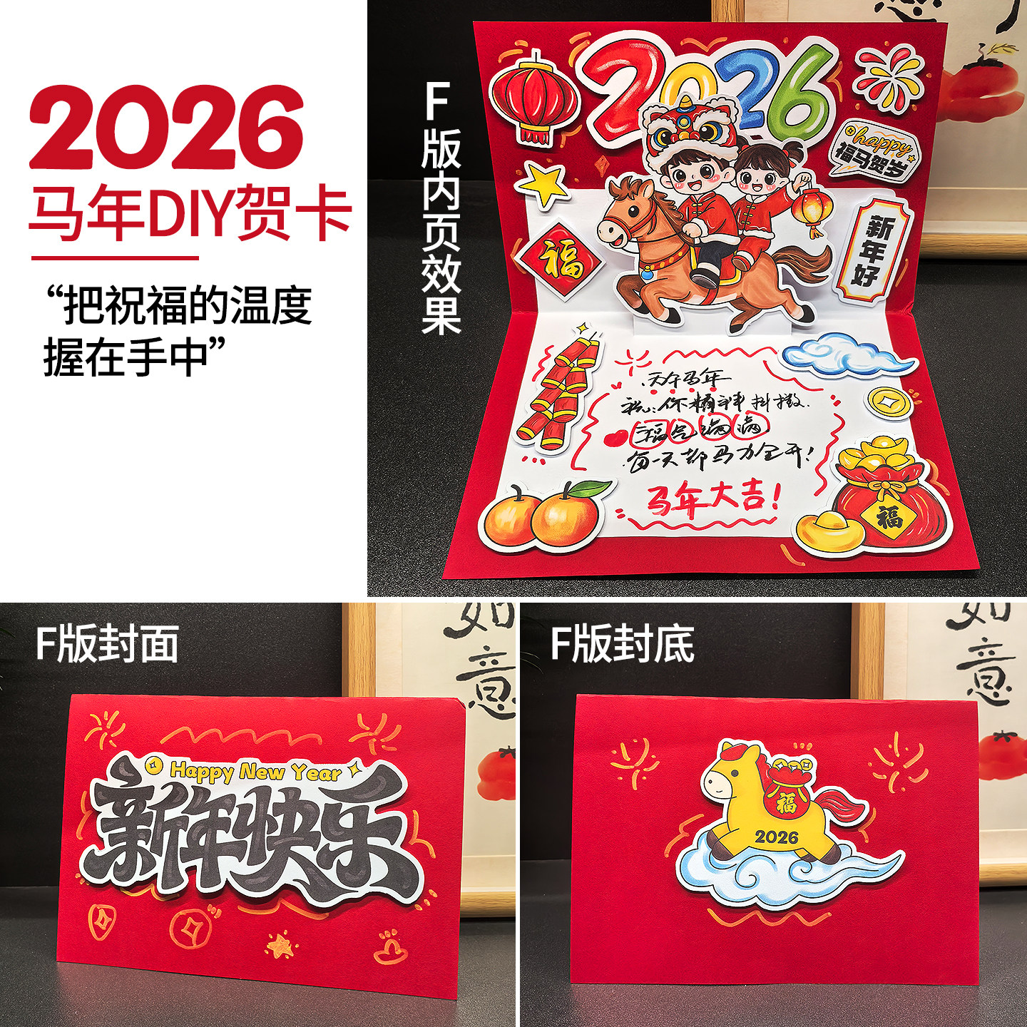 2026新年立体贺卡马年祝福卡儿童涂色自制学生半成品手工DIY材料