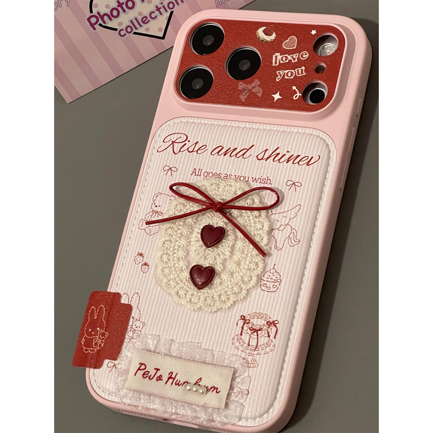 少女心韩系蕾丝爱心蝴蝶结适用iPhone17promax手机壳皮革苹果17新款16pro全包14防摔15pm女款17pro超火巨好看