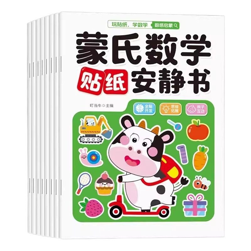 蒙氏数学贴纸书8册 宝宝0到3岁到6岁绘本智力大开发益智游戏书婴幼儿数学思维逻辑专注力训练贴贴画2岁四岁儿童卡通粘贴纸早教书籍