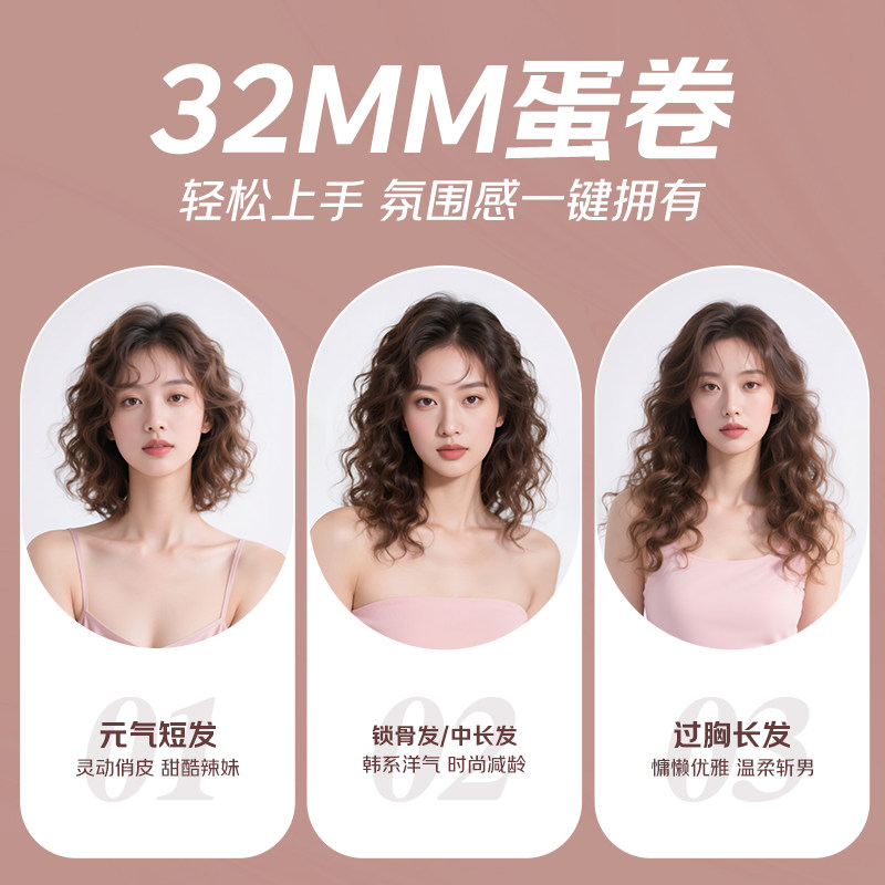 lena蛋卷头卷发棒32mm三管蛋蛋卷棒深v大卷负离子夹板卷发水波纹