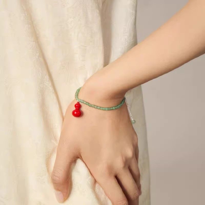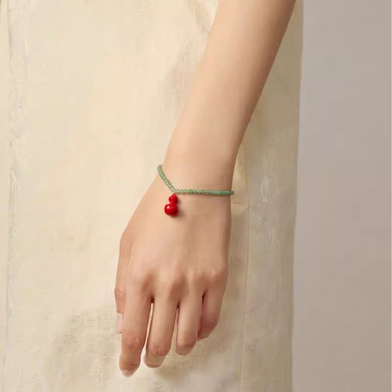 宝得意东陵玉宝石红色葫芦串珠手链中式国风福禄原创百搭圣诞礼物
