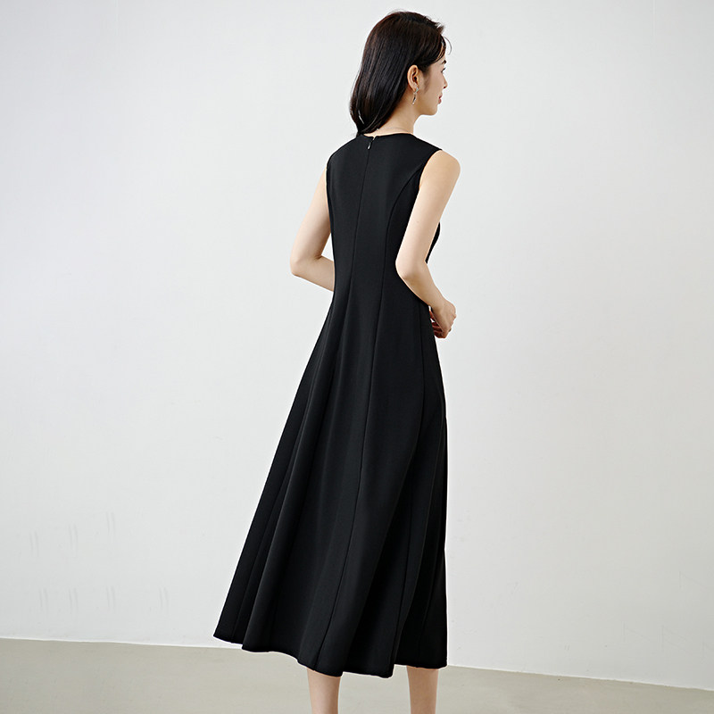 COCOBELLA简约气质黑色收腰极简风连衣裙女优雅短袖长裙FR3033-2