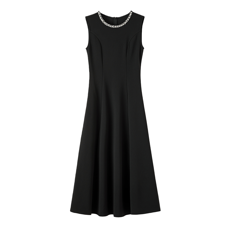 晚白2026年春新款手工钉珠圆领得体裙子重要场合礼服裙无袖连衣裙