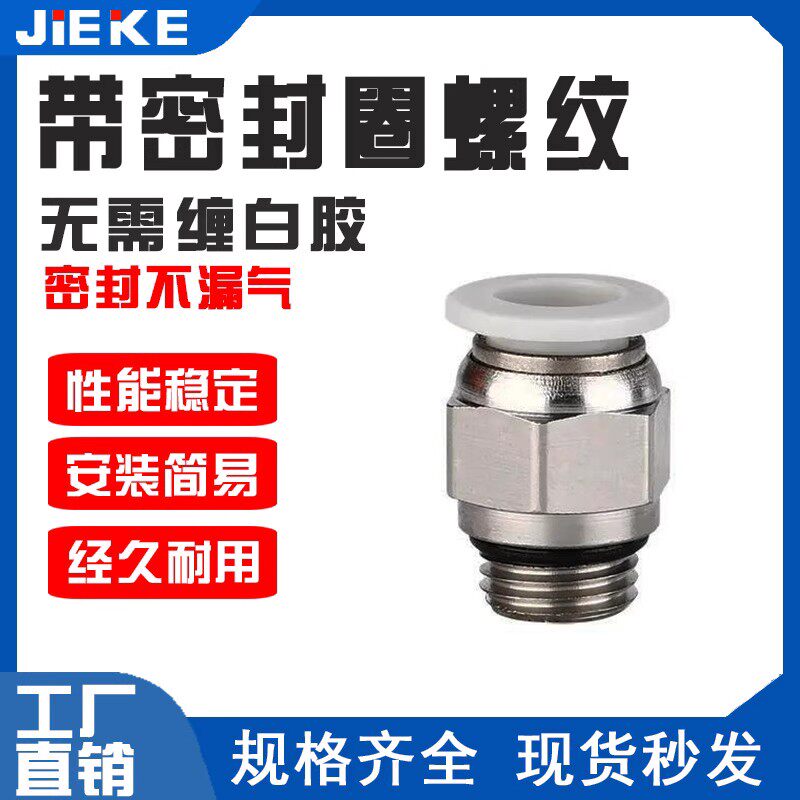 带密封圈气管快速接头气动元件4分快插PC直通螺纹8mm高压12mm气缸