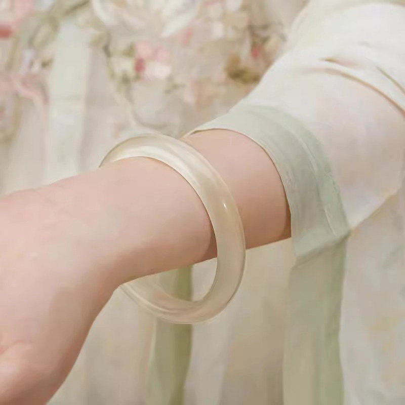 六桂福珠宝新中式新款玻璃香槟金猫眼手镯送闺蜜送女友圣诞礼物