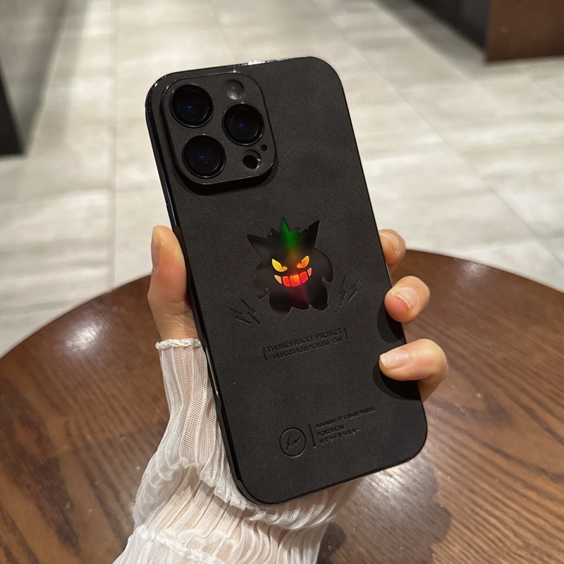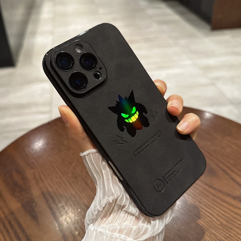 镭射渐变耿鬼适用iPhone16promax手机壳苹果15pro新款闪电怪兽13保护套14pro翻毛皮12自带镜头膜11全包16plus