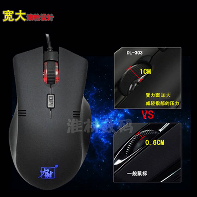 力胜DL-303有线USB电脑光学宽轮变速LOL游戏加重发光宏定义CF鼠标