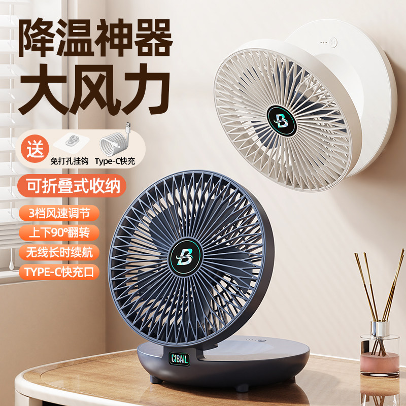 2026新款桌面小风扇小型usb充电风扇学生静音办公室桌免打孔挂壁扇便携宿舍挂壁强力大风力家用台式厨房扇