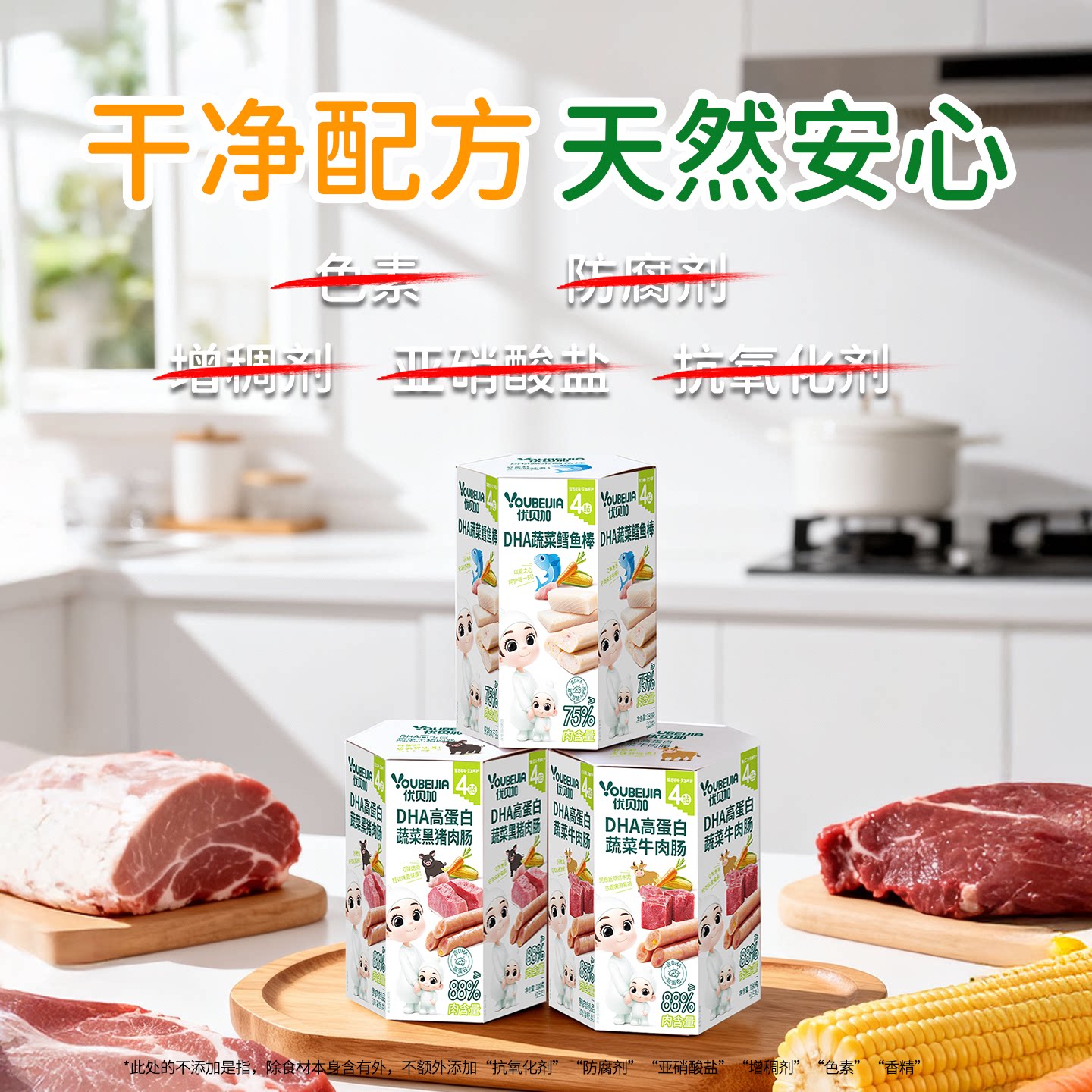 优贝加DHA牛肉肠88%含肉量独立装儿童鳕鱼肠送宝宝婴儿幼儿辅食谱