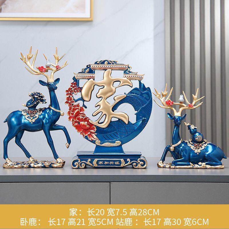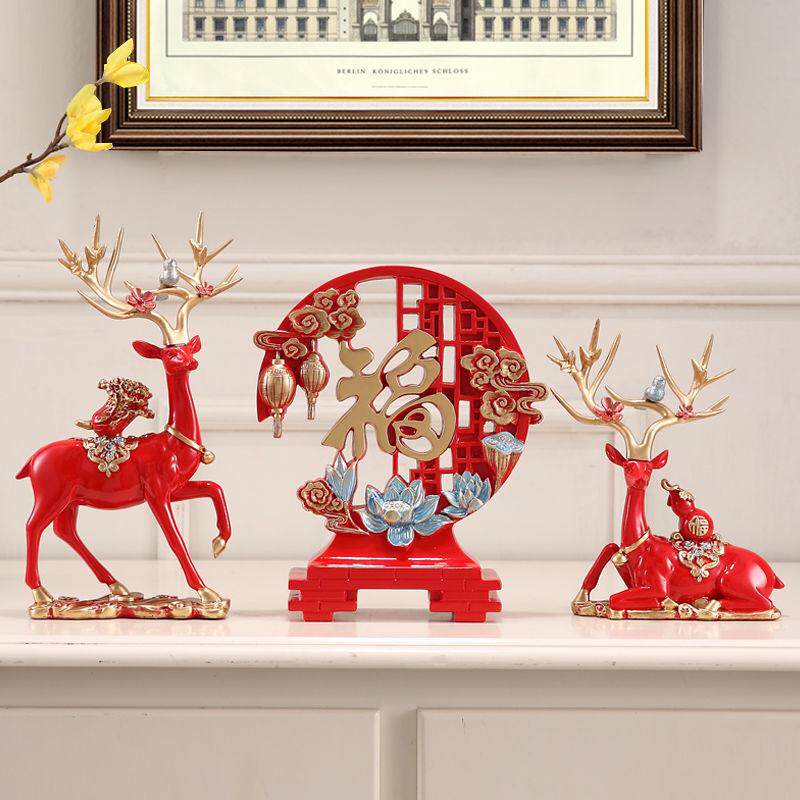 乔迁开业对鹿福字客厅摆件家居三件套玄关电视柜装饰品送礼佳品