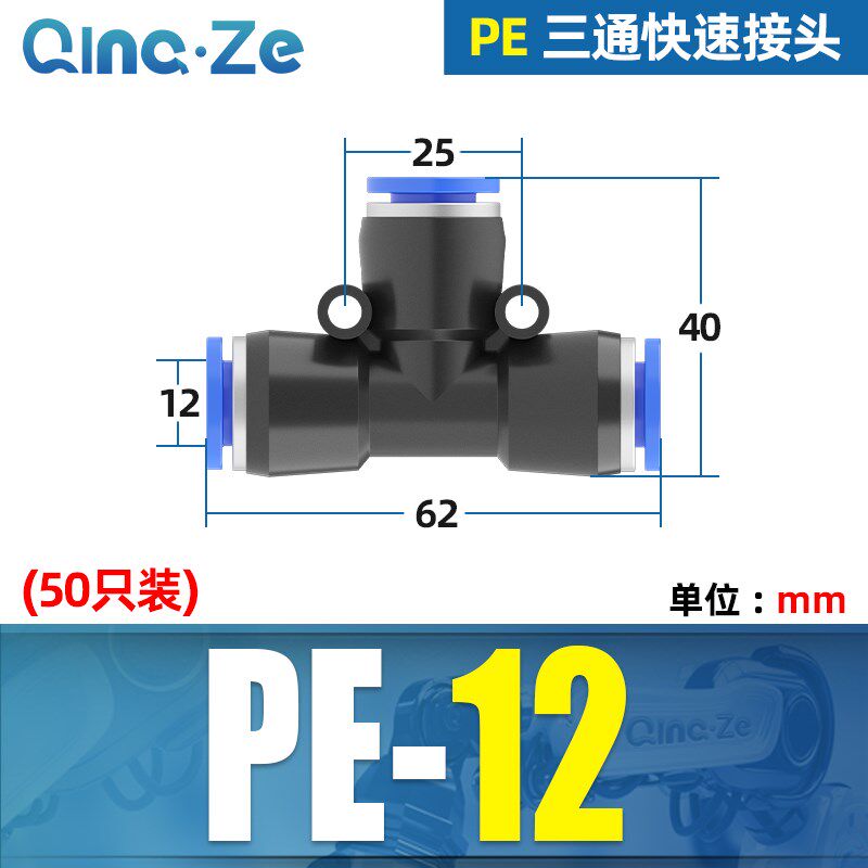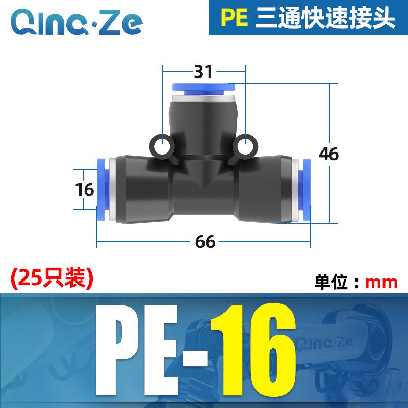 气动元件快速快插气管三通接头T型PE-4/6/8/10/12/16气泵气缸配件