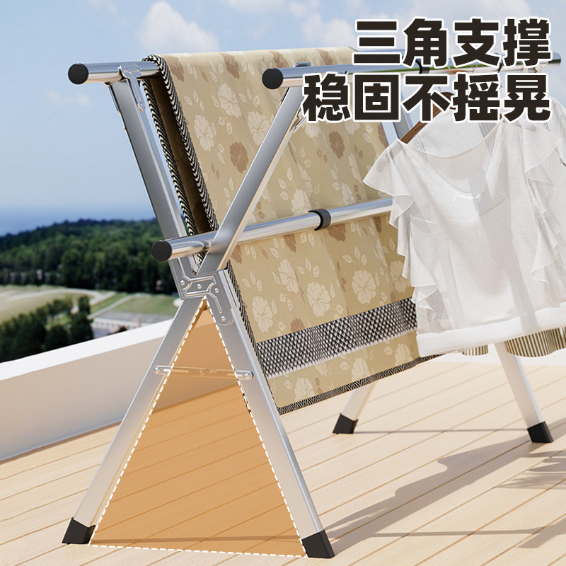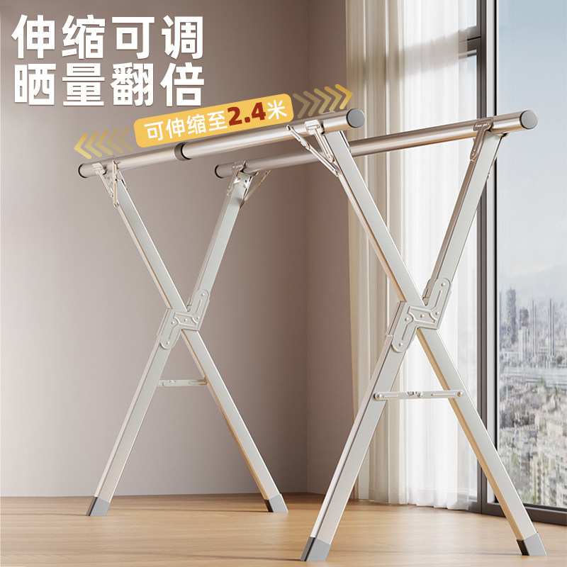 落地晾衣架折叠不锈钢家用阳台室内室外伸缩凉衣杆室内晒被子神器