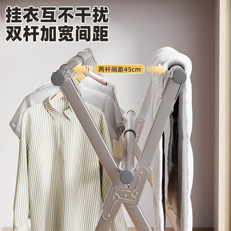 晾衣架落地家用卧室挂衣架宿舍室内双杆双层晒衣服架子简易凉衣杆