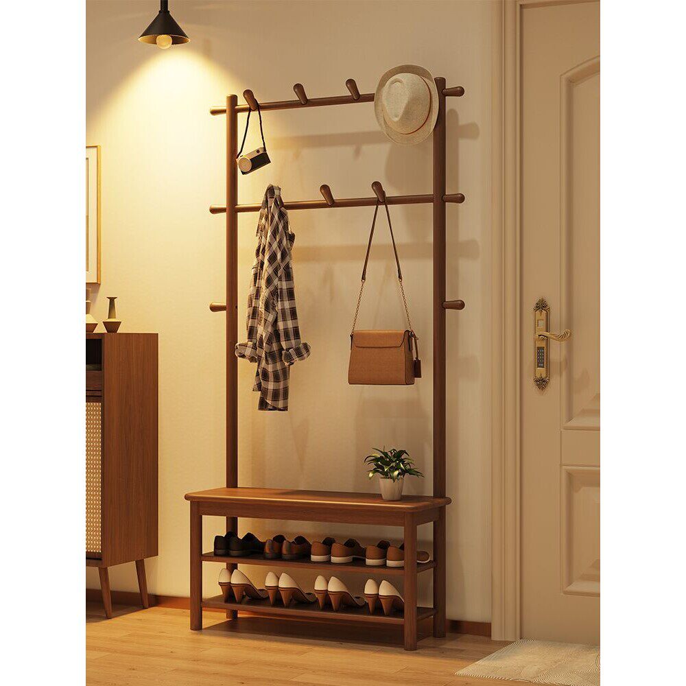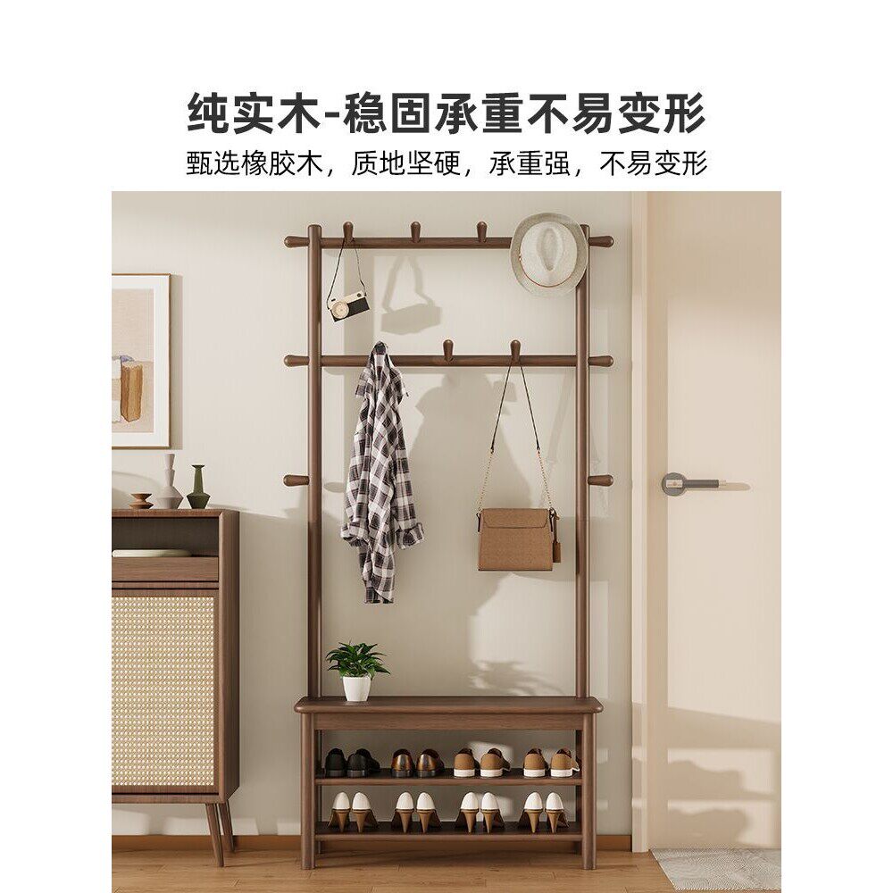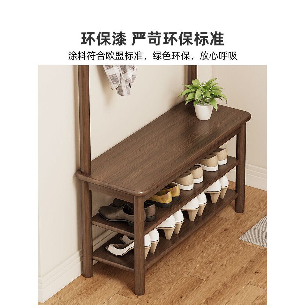 a实木换鞋凳鞋柜带挂衣架一体衣架落地卧室家用入户门口玄关衣帽