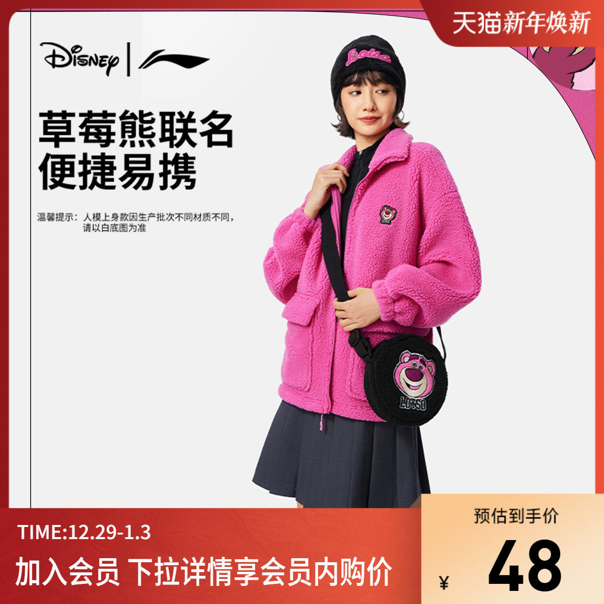 李宁|皮克斯草莓熊联名系列斜挎包男包女包新款运动包