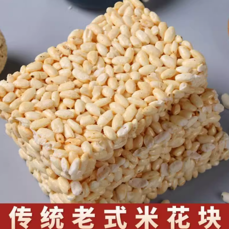 爆米花块传统老式大米花糕童年怀旧零食儿童小吃大米板爆米花糖