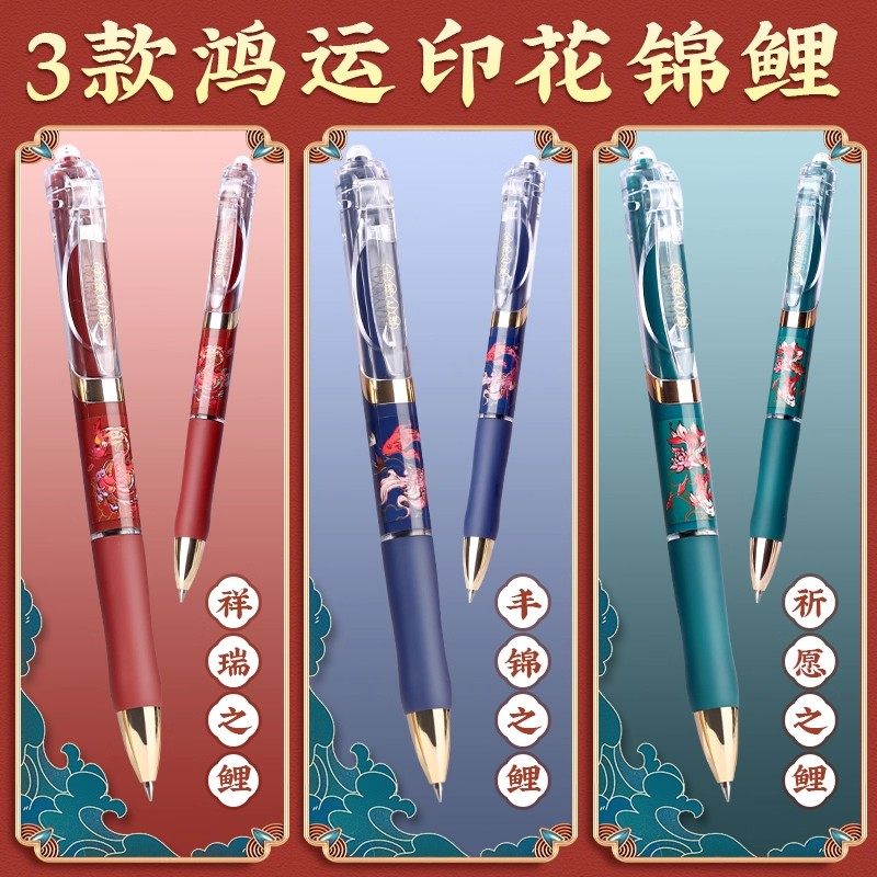 晨光k35锦鲤限定按动中性笔子弹头0.5mm高颜值中国风寓意好学生考试专用笔按动笔水笔碳素笔圆珠笔考试刷题笔