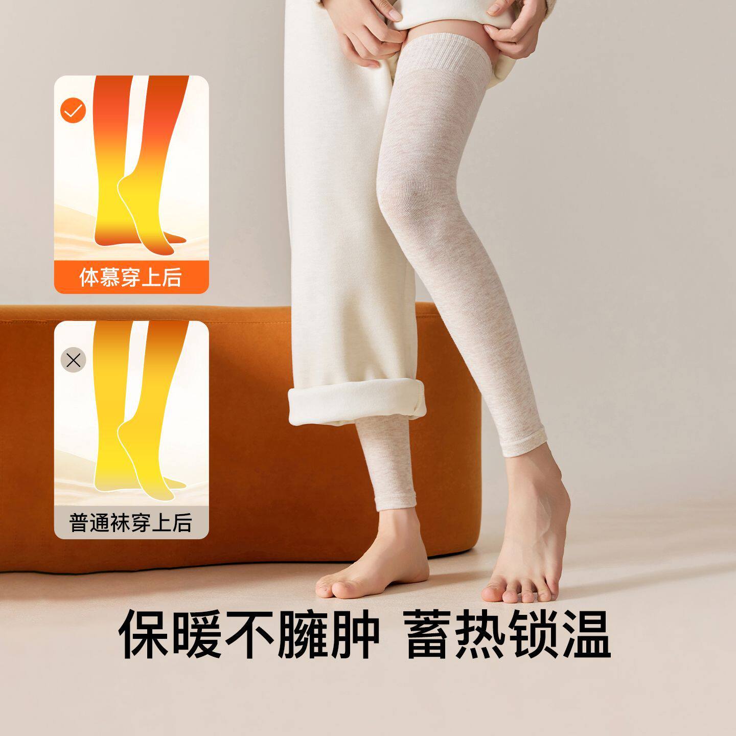 羊毛护膝袜套女秋冬关节保暖锁温加厚防滑过膝腿套长筒大腿袜防寒