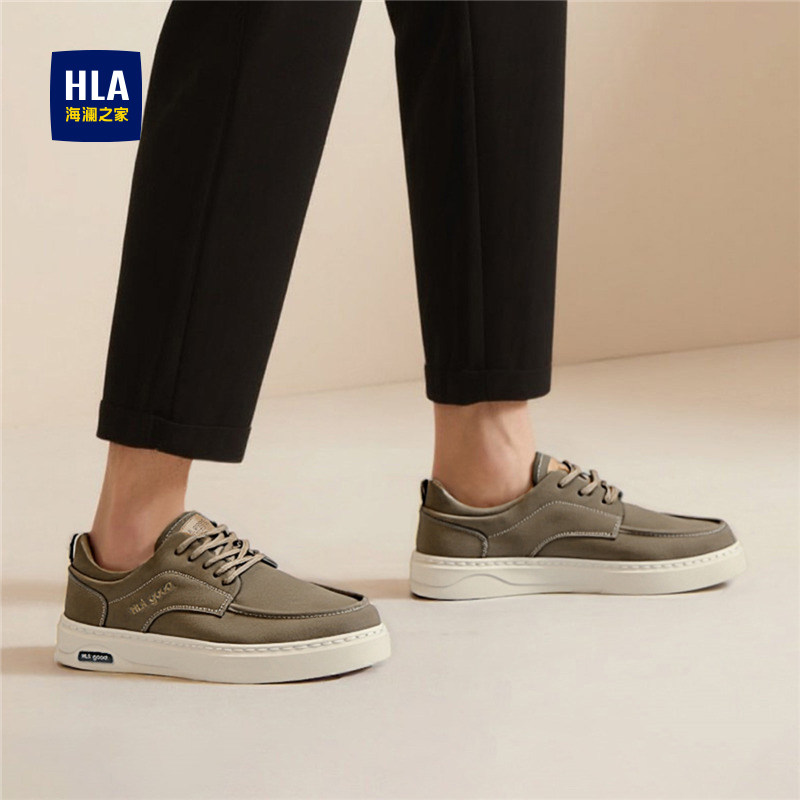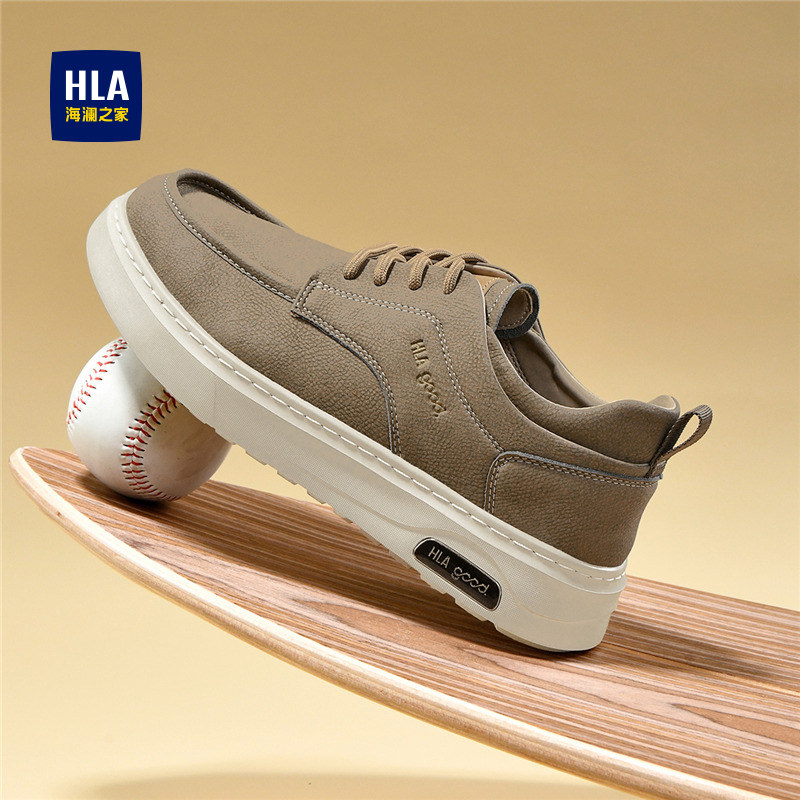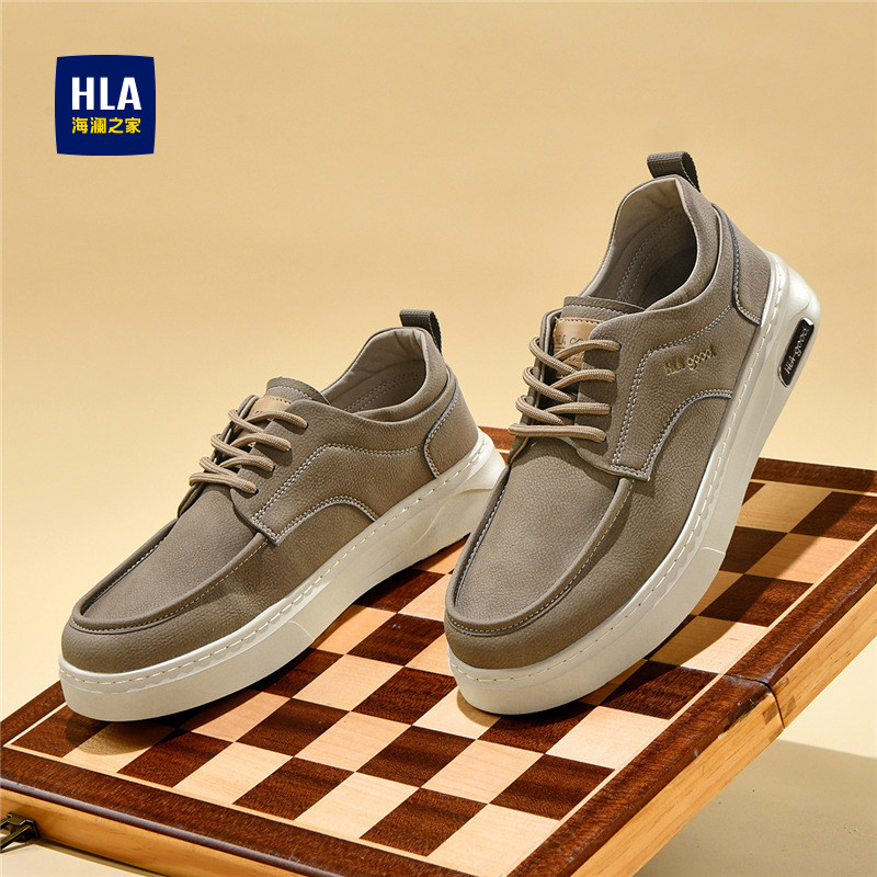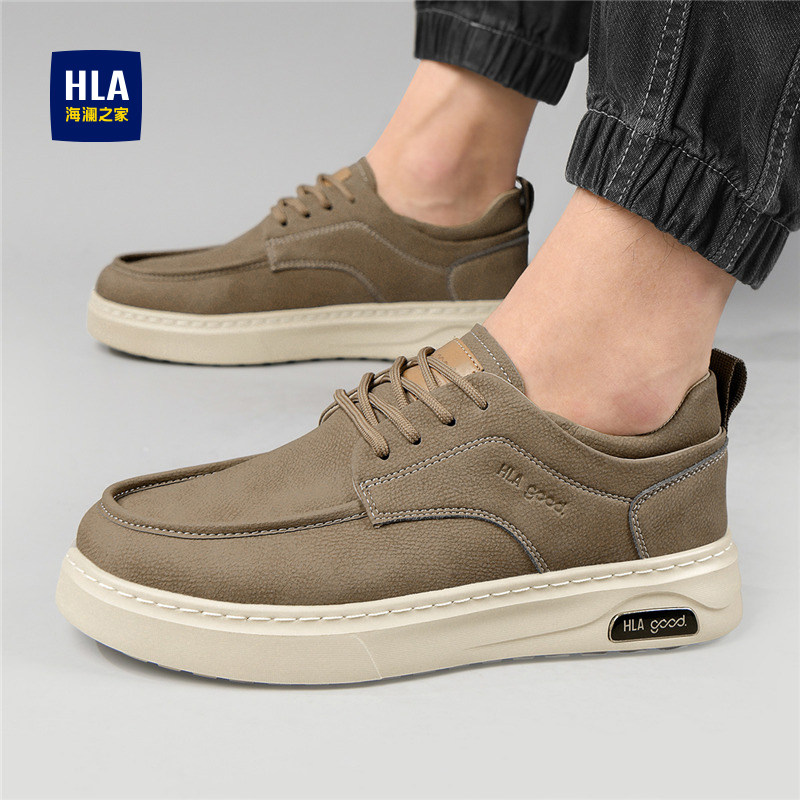 HLA/海澜之家男鞋新款秋冬百搭潮流休闲鞋男复古透气皮面时尚板鞋