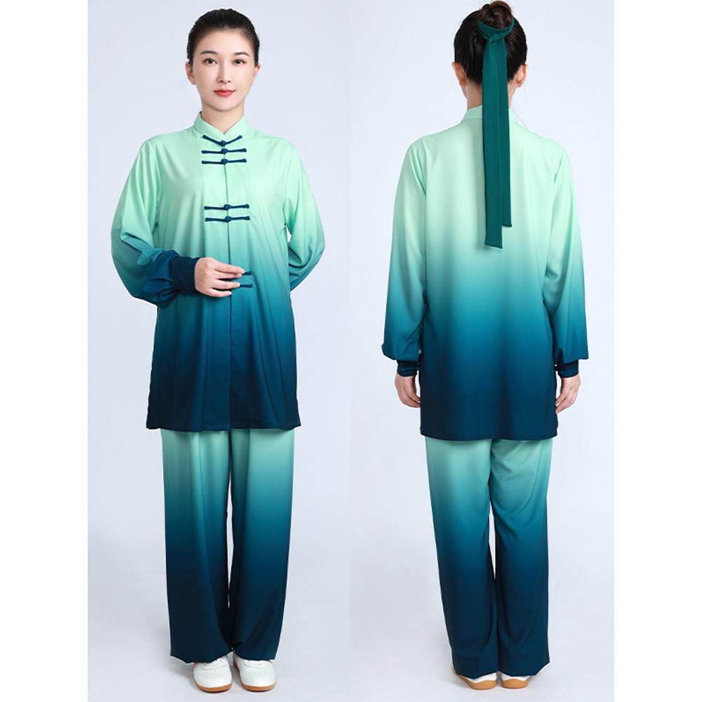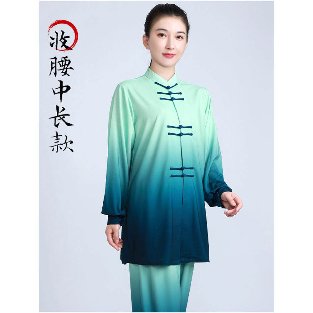 太极服女新款比赛表演渐变色太极拳练功服装男八段锦春秋青绿