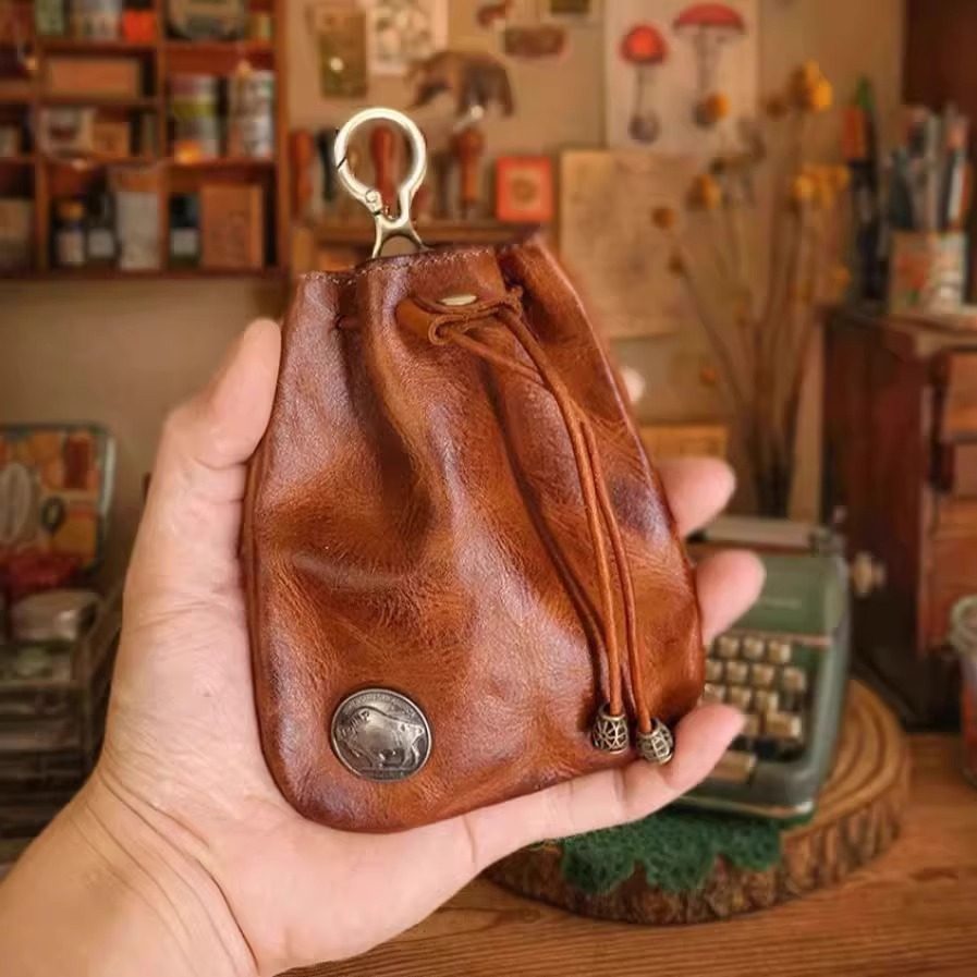 日系手工复古零钱包简约钥匙包多功能腰包男小挂包文玩核桃收纳包