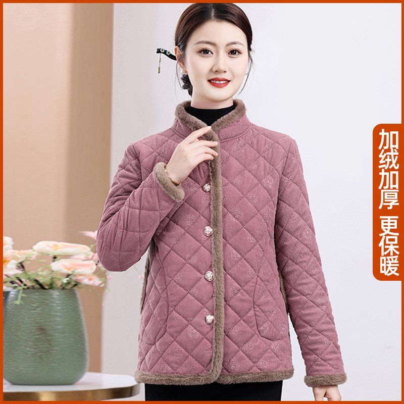 中老年妈妈小棉袄女装加绒加厚棉衣外套新款洋气秋冬保暖棉服薄款