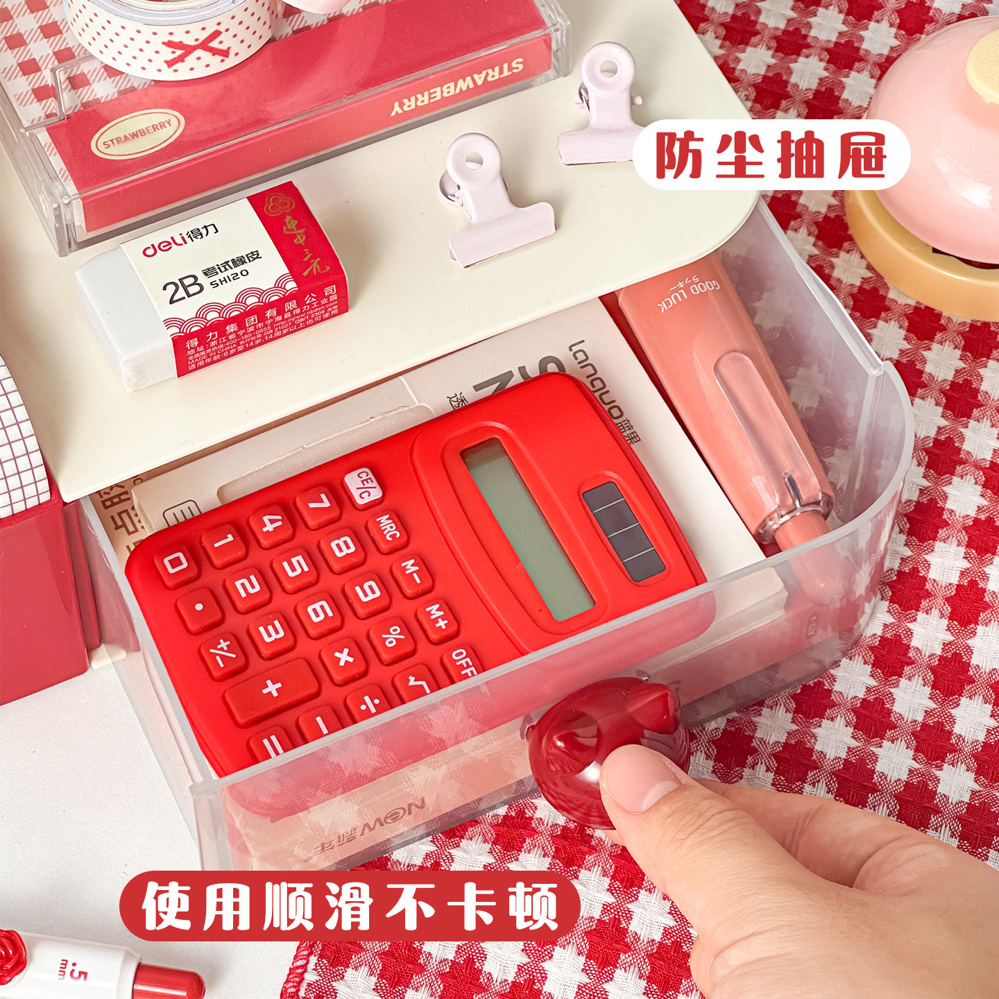 萌趣熊猫!旋转笔筒收纳盒儿童学生多功能一体抽屉式笔桶创意高颜值男孩女孩书桌置物架桌面大容量文具收纳盒