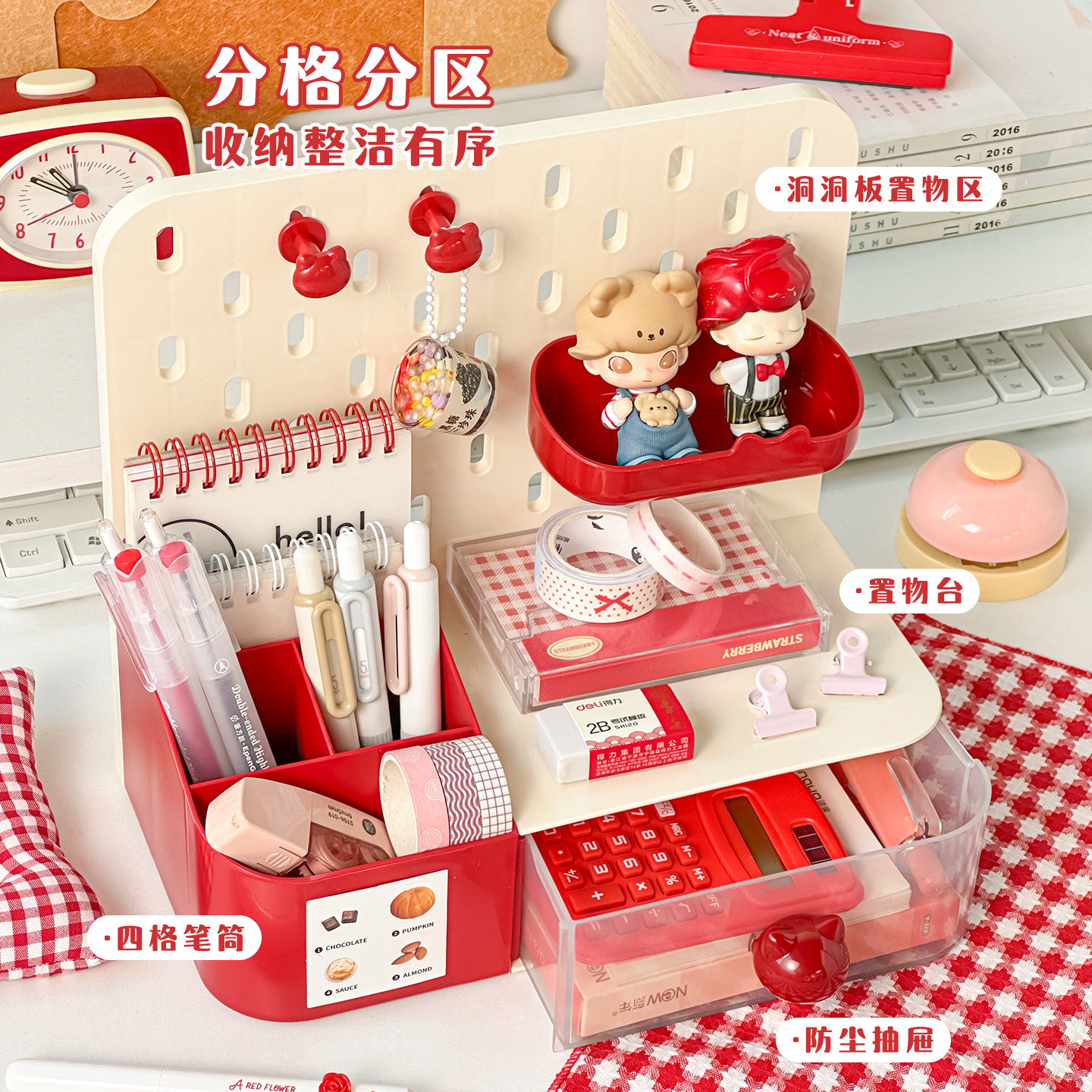 三年二班 笔筒办公室桌面收纳盒学生轻奢高级感大容量超大儿童男孩女孩高颜值ins风创意多功能笔筒文具置物架