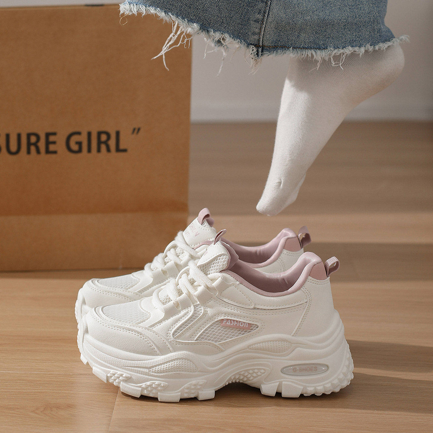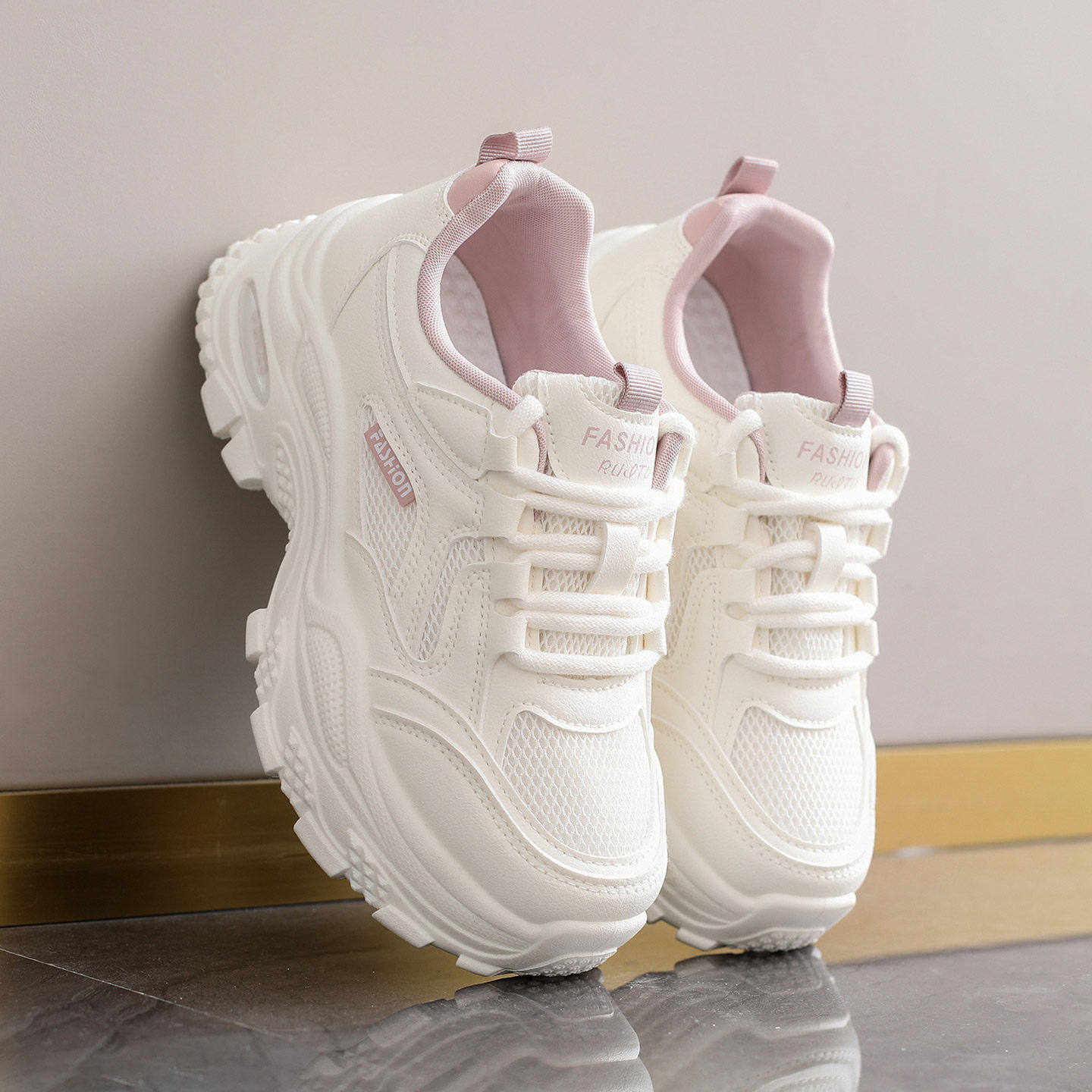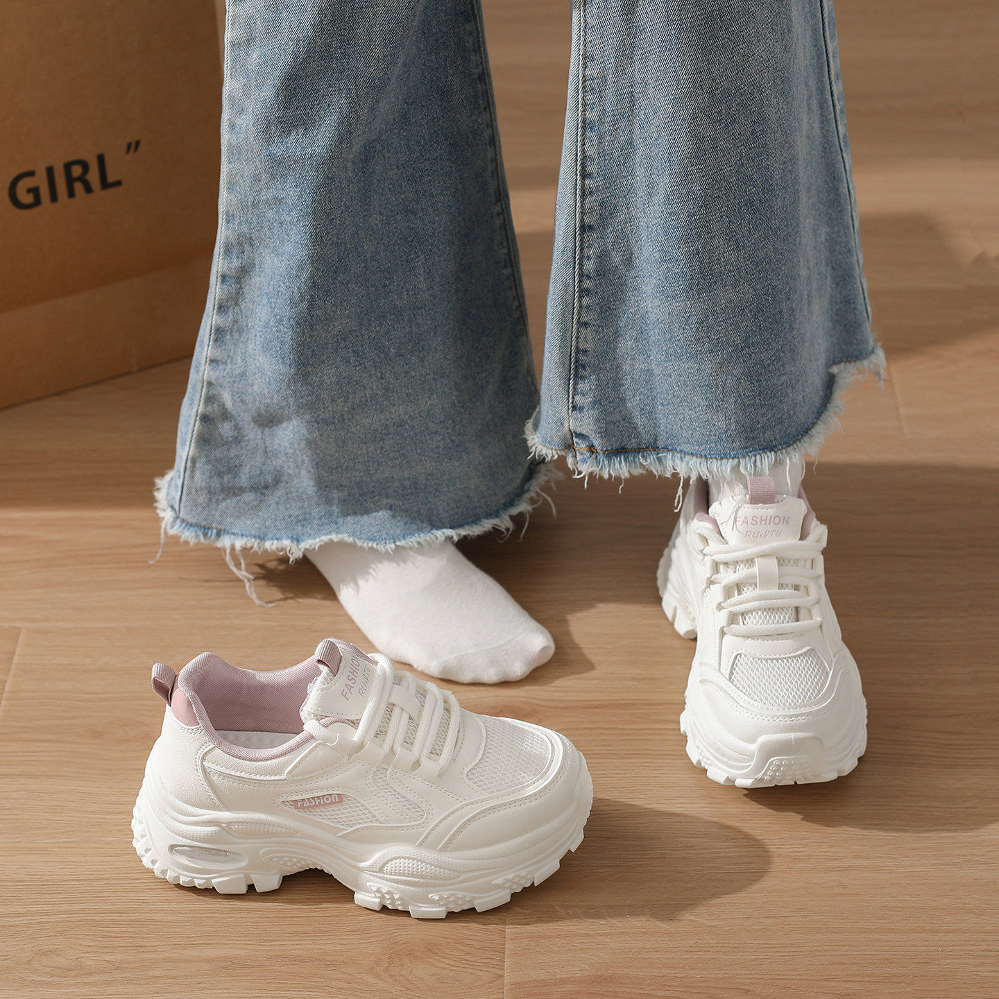 欧伦啄木鸟女鞋春季运动鞋增高配裙子小白鞋轻便软底超轻老爹鞋网