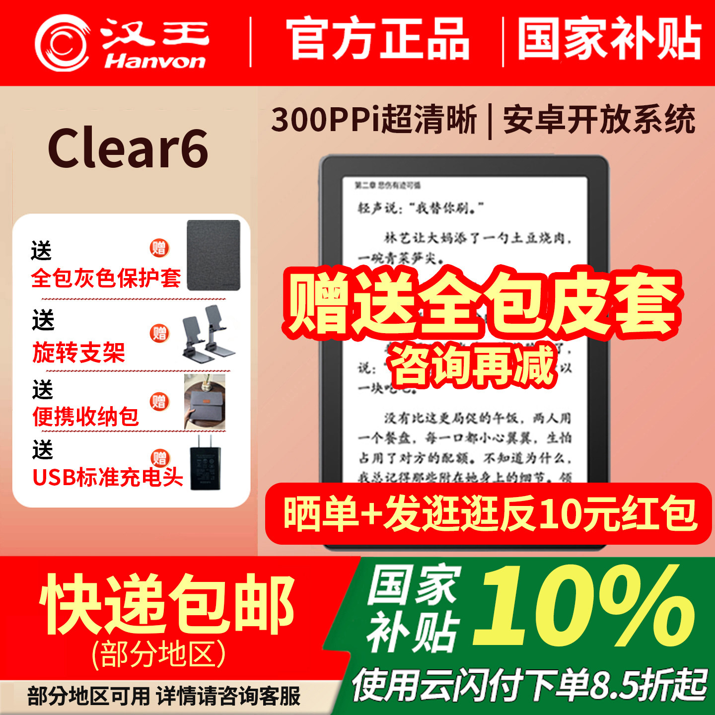 【入会立减】汉王clear6新款碧水青色电子墨水屏阅读器电子纸护眼读书阅览器电纸书电子书看书