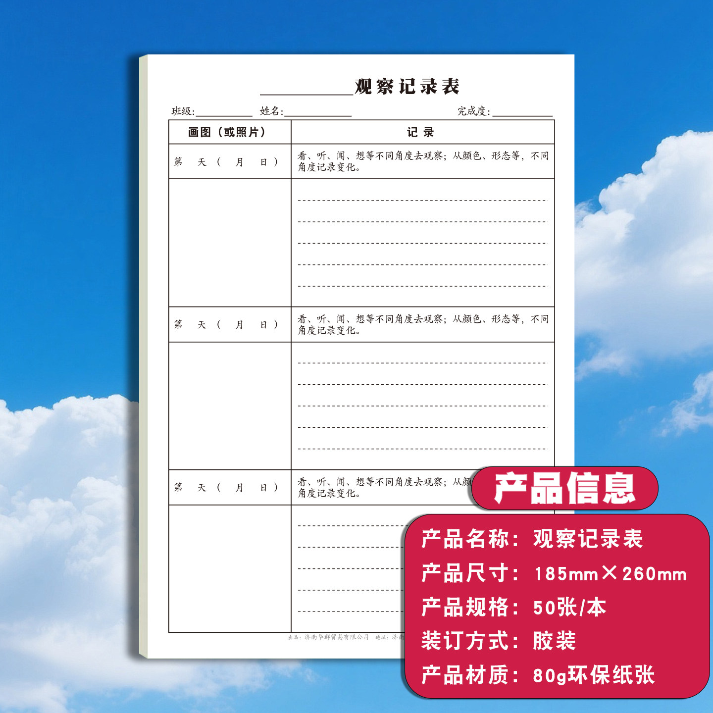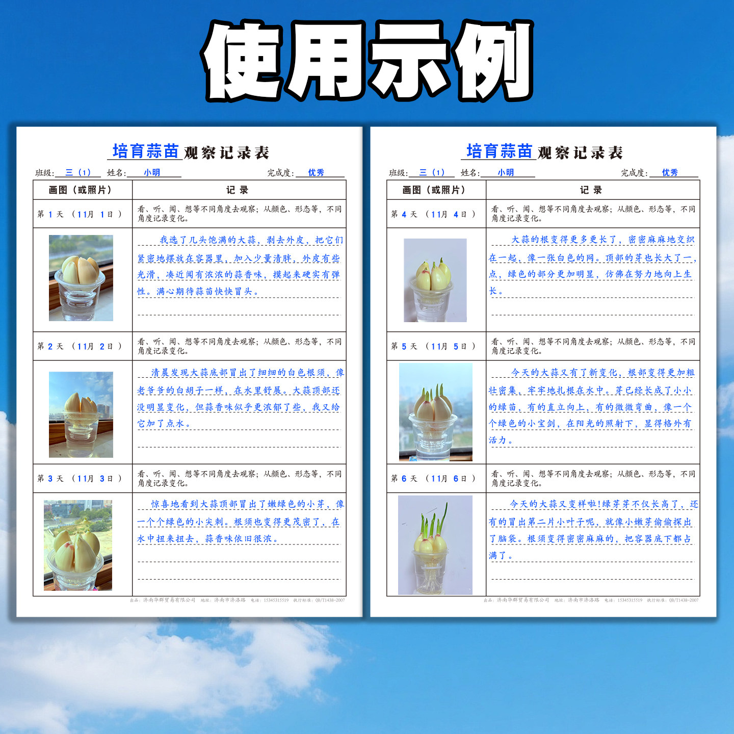 小学生科学二三年级观察记录表豆芽红薯白菜大蒜韭菜西红柿油菜白菜生菜蔬菜植物生长培养观察记录表记录本
