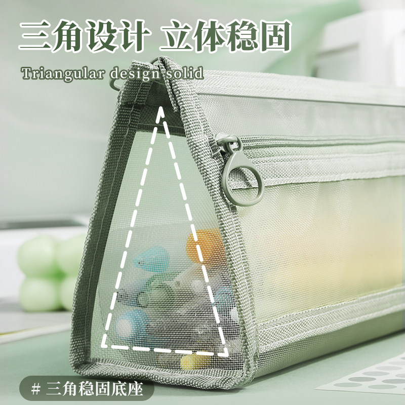 笔袋透明三角网纱学生考试专用文具袋儿童铅笔袋双层立体大容量文具盒男女孩款2026新款简约便携收纳袋高颜值