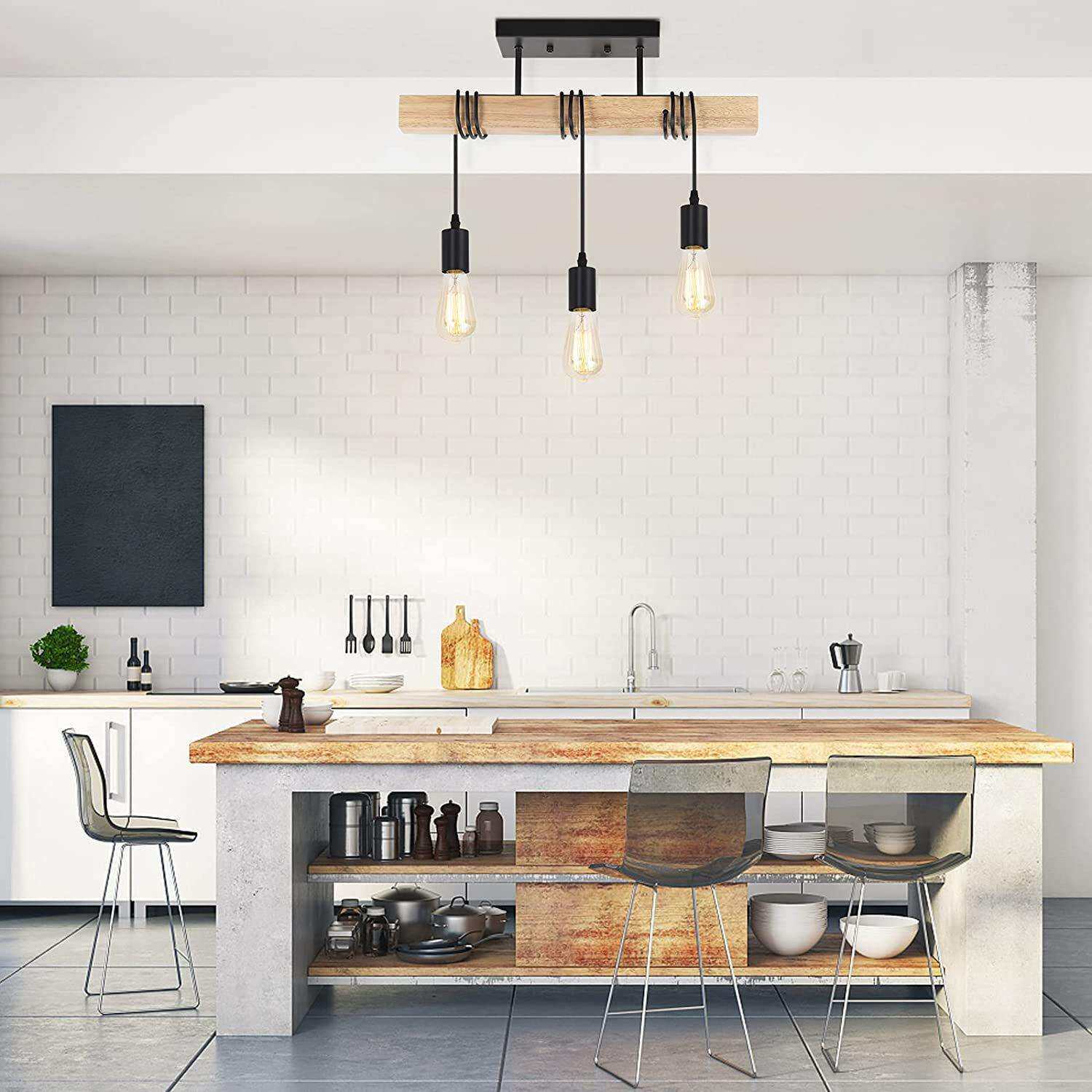 跨境美式实木吊灯创意复古工业风原色多头木艺客厅餐厅吸吊两用灯